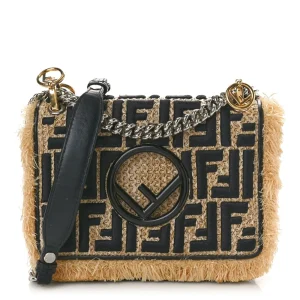 Lushentic Grade Bags – Fendi FF Small Kan I Bag in Natural Black Raffia