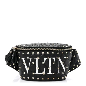 Lushentic Grade Bags: VLTN Rockstud Spike It Belt Bag Black/White