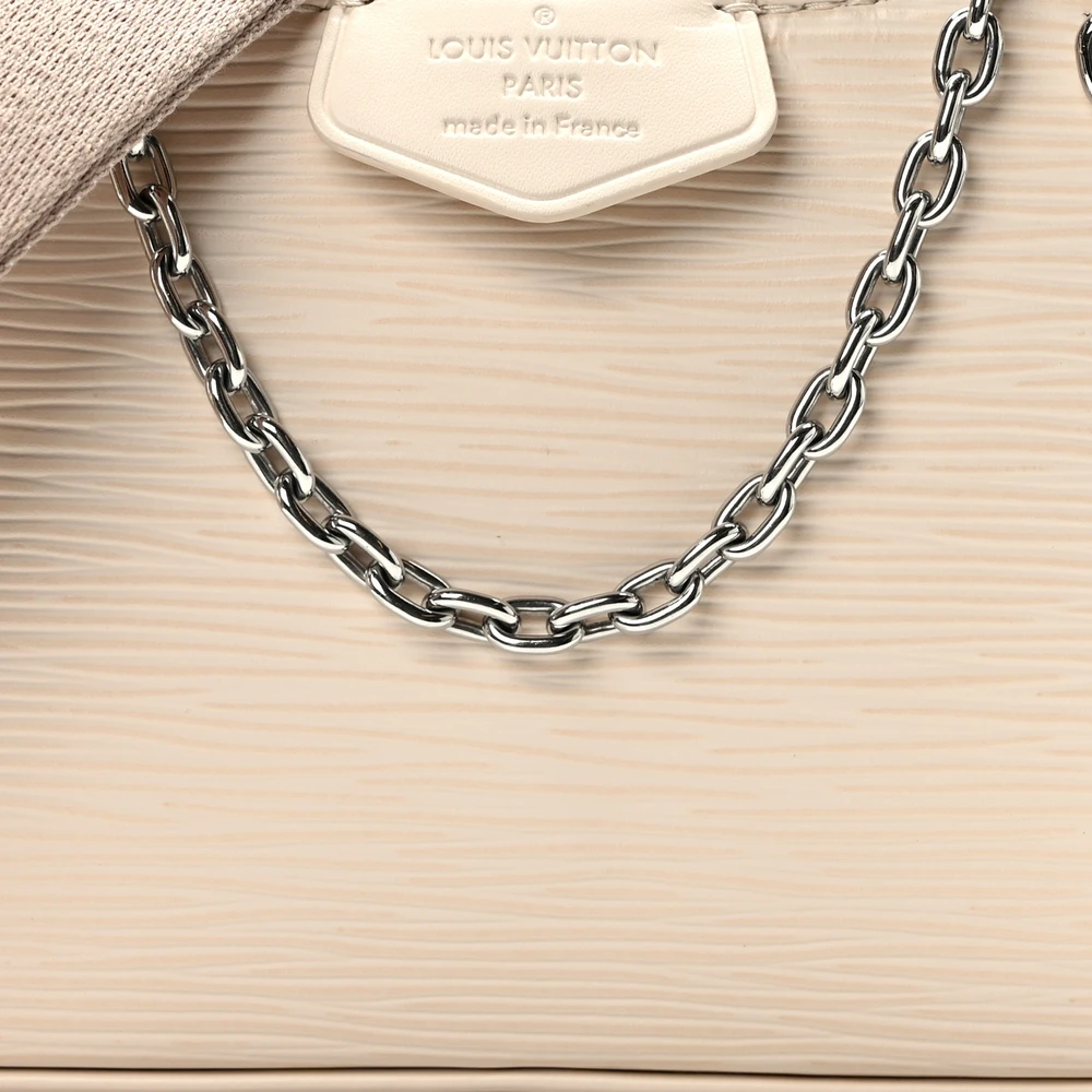 This Louis Vuitton Easy Pouch On Strap PM Quartz Epi Leather Silver Hardware is a stylish and functional pouch. Made from Quartz Epi leather, it features a sleek and modern design with silver hardware. The PM size is perfect for carrying your essentials, making it ideal for travel or casual outings. The detachable strap offers versatility, allowing you to wear it as a crossbody or clutch. Its compact form fits easily in any bag, ensuring it’s both practical and chic. A must-have accessory for any fashion lover.
