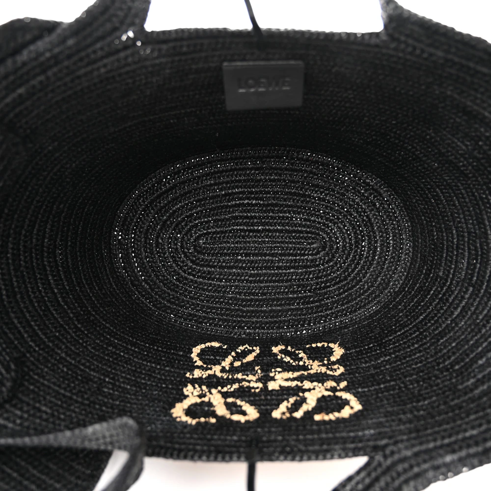 This Loewe Elephant Basket Tote Bag Medium in Black combines raffia and whimsical design. Spacious and lightweight, it’s ideal for daily use. The black tone adds contemporary sophistication. Sturdy handles ensure ease of carrying. A fun and functional accessory. Perfect for casual outings.