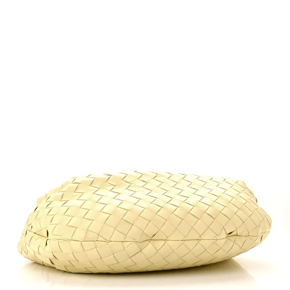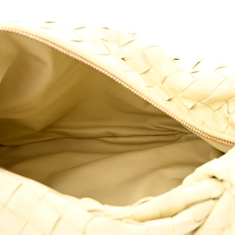 This Bottega Veneta Maxi Intrecciato Teen Jodie Hobo in Ice Cream offers a perfect blend of luxury and utility. Nappa leather and the iconic woven design create a sophisticated look. Its spacious interior accommodates essentials effortlessly. The soft pastel hue adds a playful touch to its timeless appeal. A chic choice for casual and formal occasions. Redefine elegance with this stylish hobo bag.