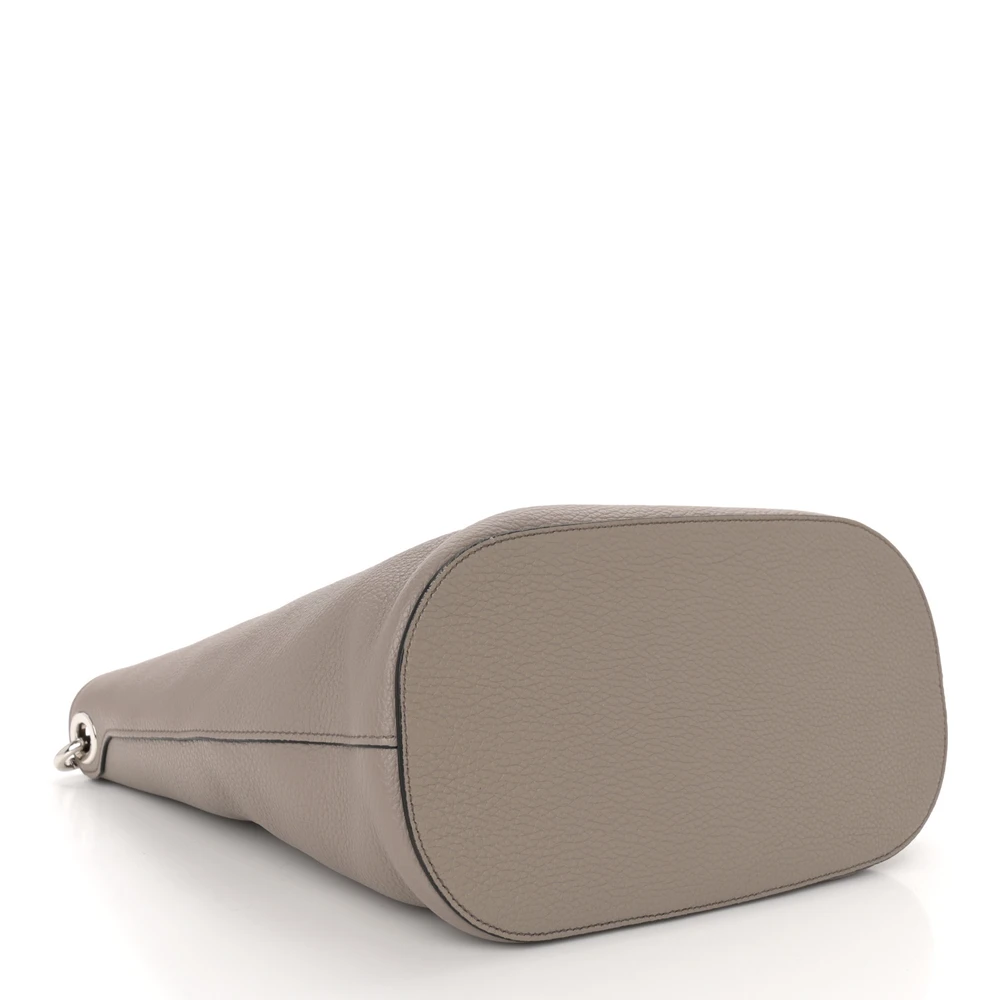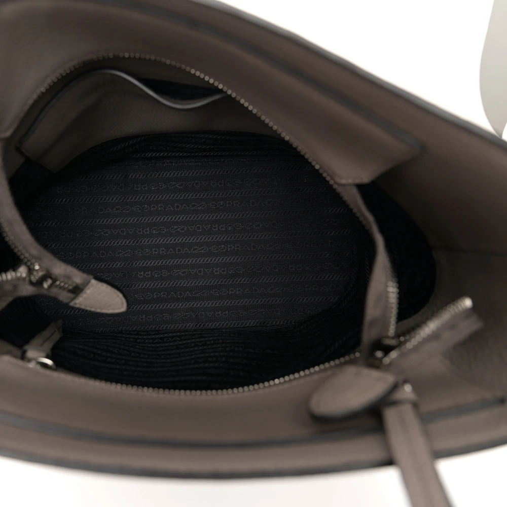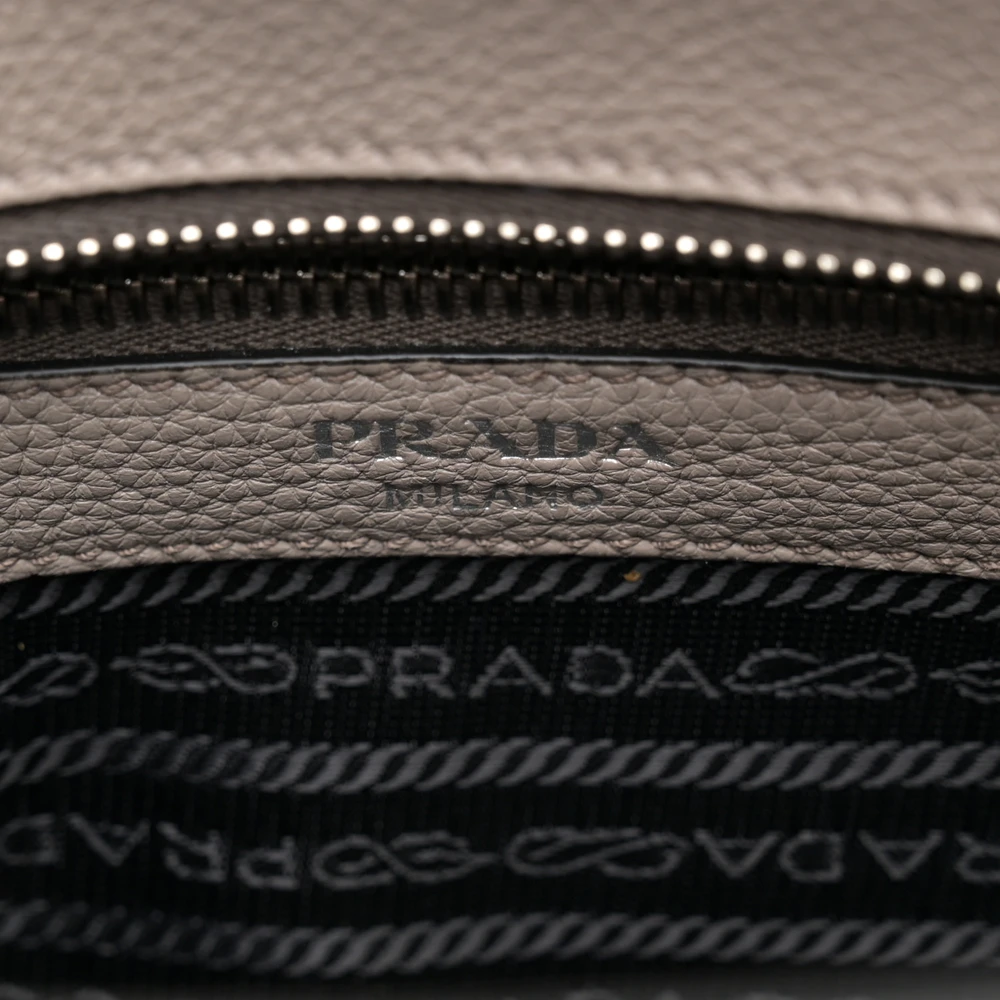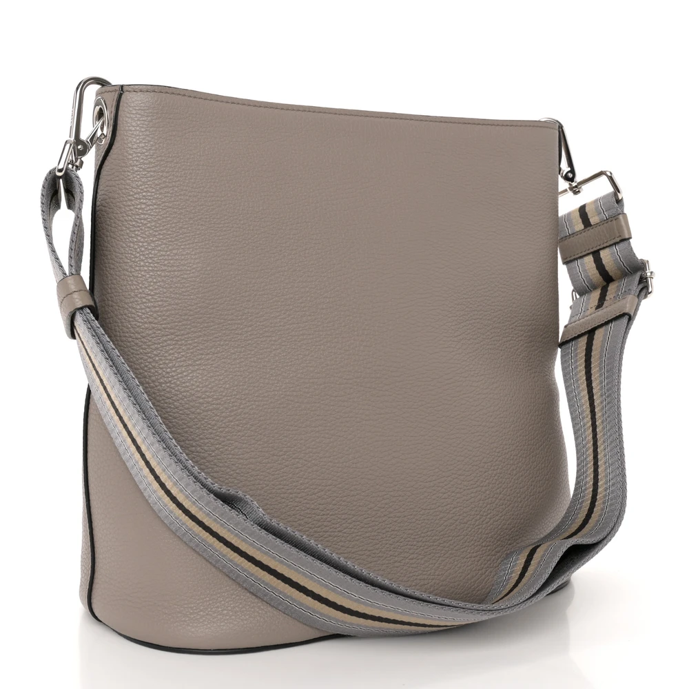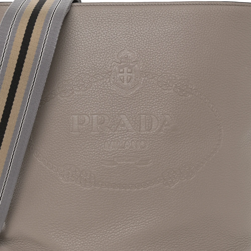 This Prada Medium Logo Hobo in Ardesia is made of Vitello Phenix leather. Its sleek and modern design is ideal for daily use. Spacious interior accommodates essentials with ease. Comfortable strap for over-the-shoulder wear. A timeless addition to any collection. Stylish and practical for all occasions.