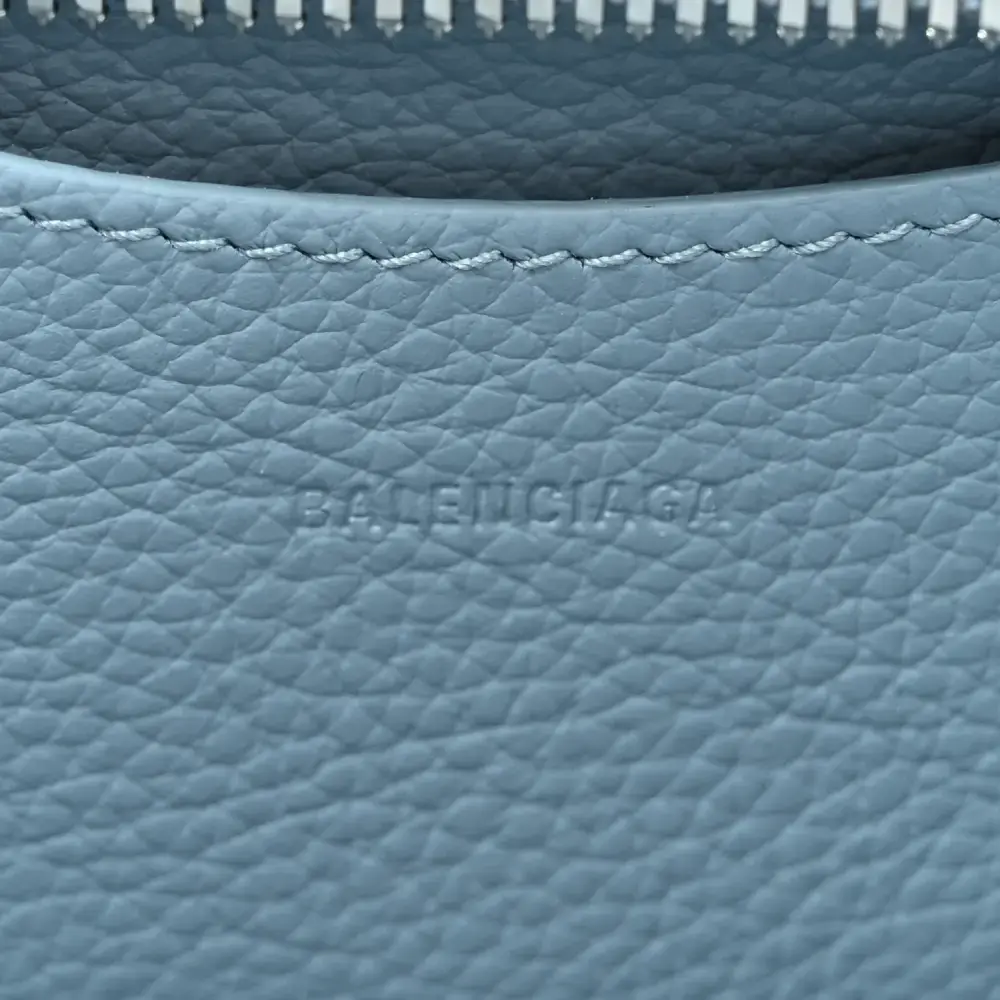 This Balenciaga Mini Neo Classic City Bag in Blue/Grey showcases grained calfskin leather with silver hardware for a refined finish. Its structured silhouette is adorned with zippered accents and buckle details, blending elegance with edge. Ideal for daily use, it accommodates essentials while adding a pop of color to your outfit. The detachable strap ensures versatile styling options. A testament to Balenciaga’s commitment to craftsmanship and contemporary design.