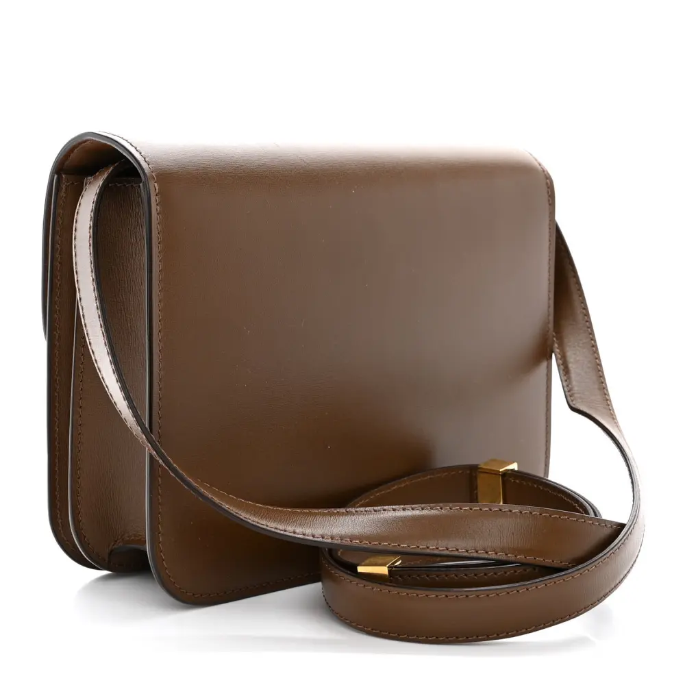 This Celine Small Teen Classic Box Flap Bag in Camel features box calfskin leather. Gold hardware adds a polished finish to its structured silhouette. Compact and stylish, it’s perfect for daily or evening wear.