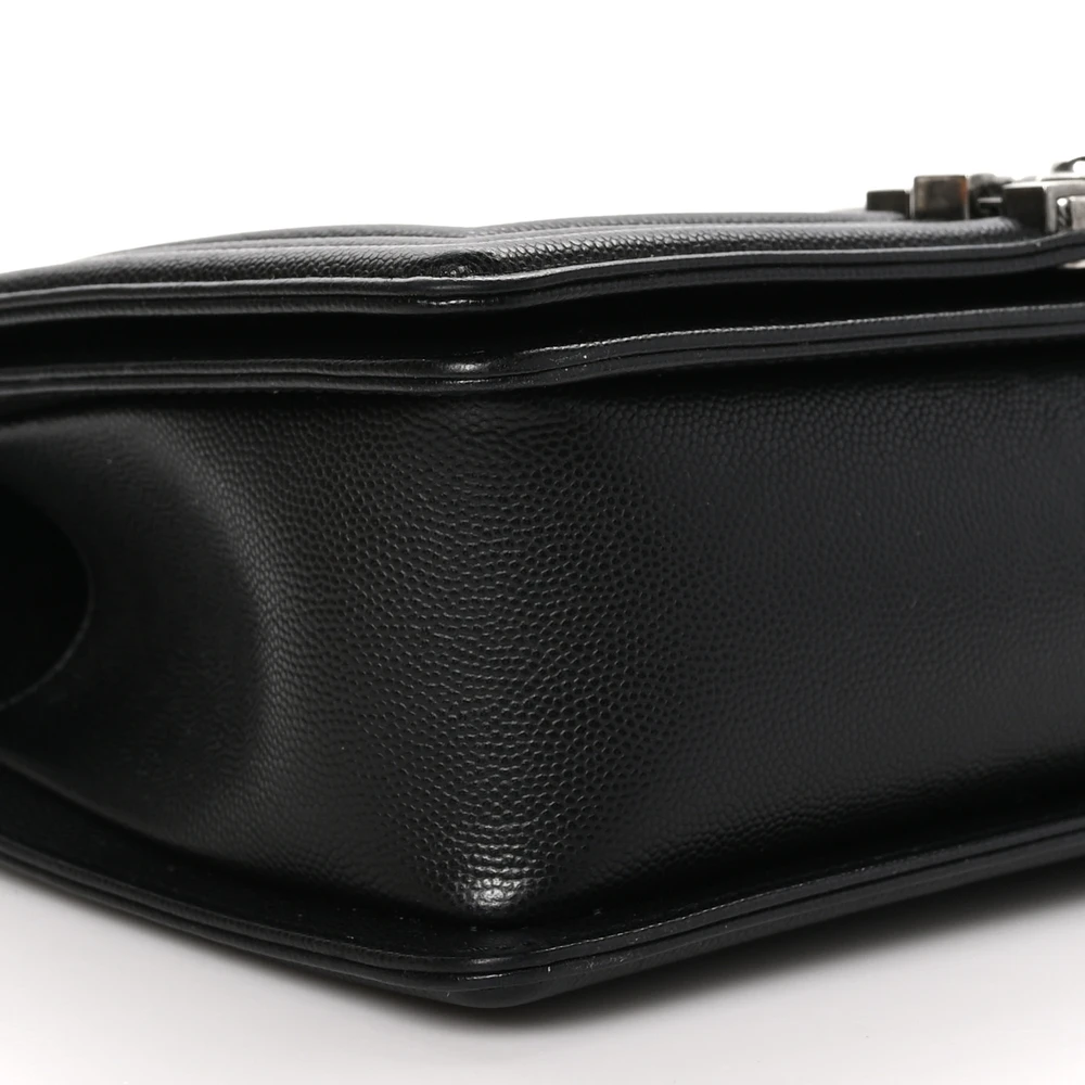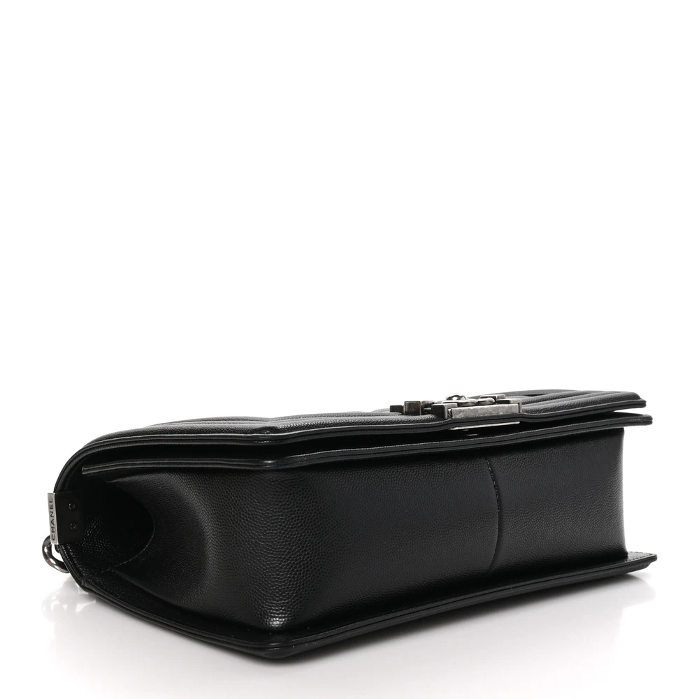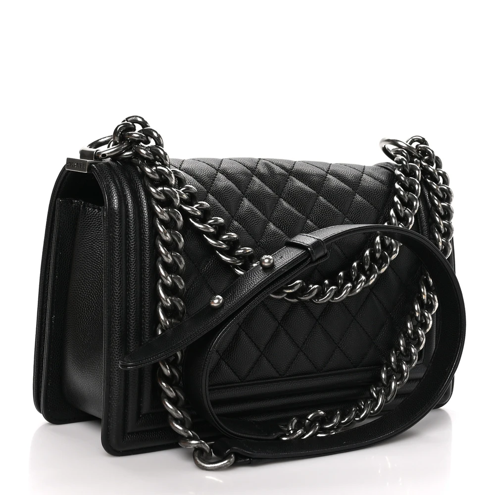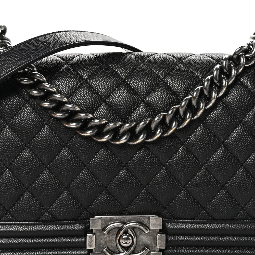 This Chanel Boy Flap Medium in Black Quilted Caviar Leather with Ruthenium Hardware is a bold and timeless piece. The caviar leather provides durability and luxurious texture. Ruthenium hardware adds a modern and edgy touch. Spacious yet structured, it’s perfect for both day and evening use. The quilted design highlights Chanel’s iconic craftsmanship. A statement piece for any sophisticated wardrobe.