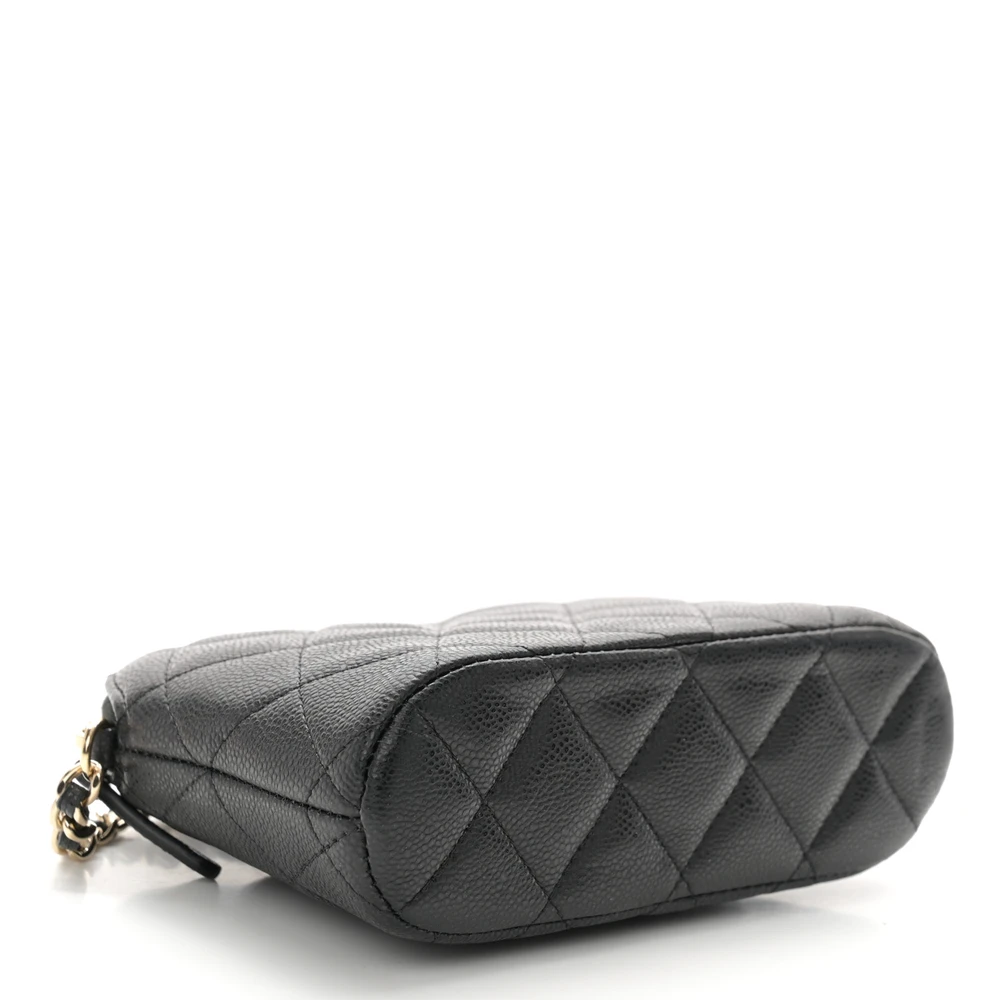 This Chanel Classic Clutch With Chain Small in Black Quilted Caviar Leather features light gold hardware. The sleek and compact design is perfect for essentials. Its durable caviar leather ensures longevity and a polished look. The chain strap offers versatility for hands-free use. Ideal for both casual outings and formal events. A timeless piece that embodies Chanel’s signature elegance.