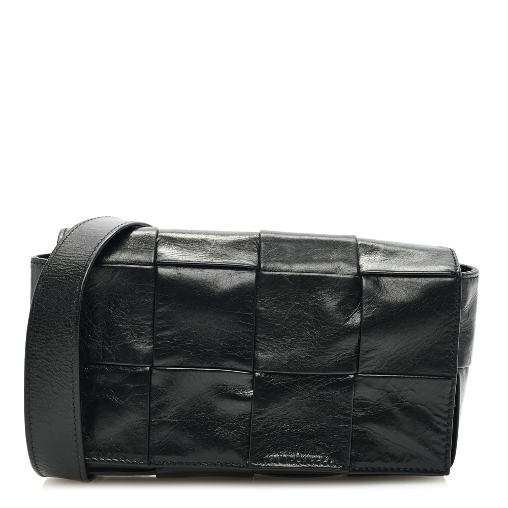This Bottega Veneta Small Intreccio Cassette Belt Bag in Black is a seamless blend of style and utility. Crafted from durable paper calfskin leather, it features the brand’s signature woven design for a sophisticated look. The adjustable belt strap offers hands-free convenience, making it perfect for on-the-go lifestyles. Its sleek black color ensures it pairs effortlessly with any outfit. A chic and functional choice for casual outings or travel.