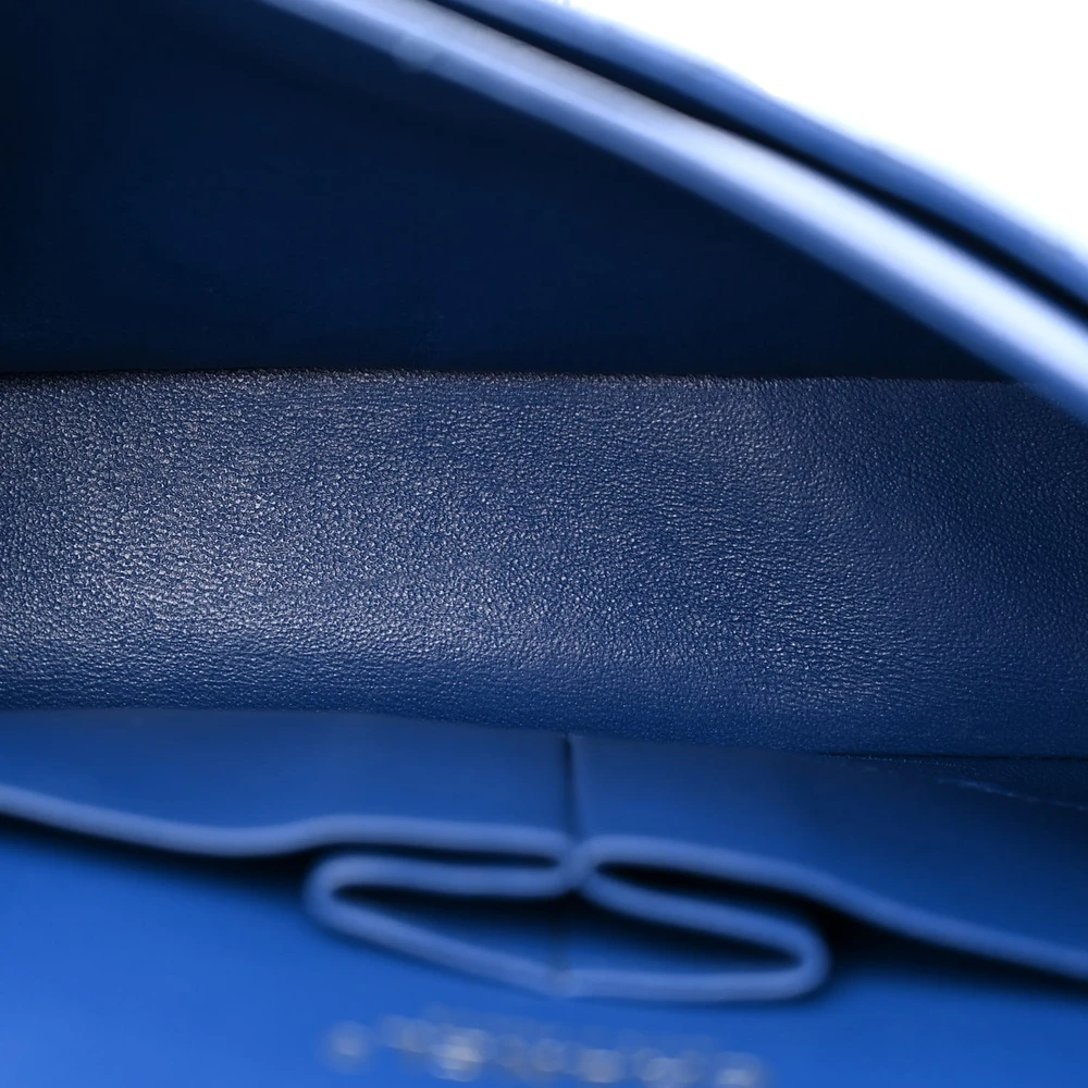 This Chanel Double Flap Medium in Blue Quilted Caviar Leather with Silver Hardware is a sophisticated addition to any collection. The durable caviar leather is accentuated by Chanel’s classic quilted design. Silver hardware adds a modern contrast to the vibrant blue color. Spacious enough for essentials, it’s ideal for both day and evening use. The double flap closure enhances security and style. A perfect blend of practicality and elegance.
