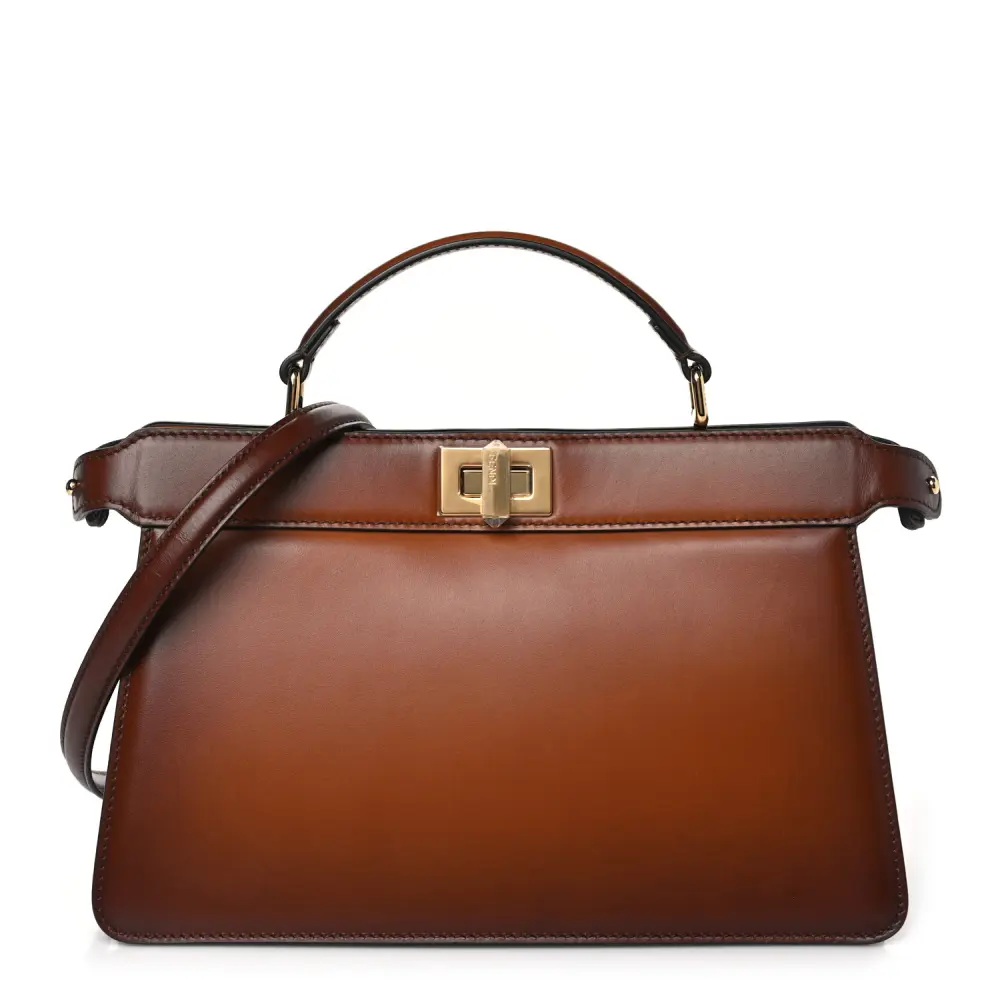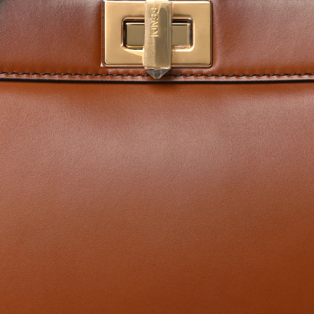 This Fendi Medium Peekaboo I SEE U East West Satchel in Cuoio is elegant and functional. King Tamponato Vitello Leather and gold hardware highlight its timeless design. Spacious compartments ensure practicality. Perfect for work or casual outings. Versatile and sophisticated, it complements any outfit. A must-have for modern professionals.
