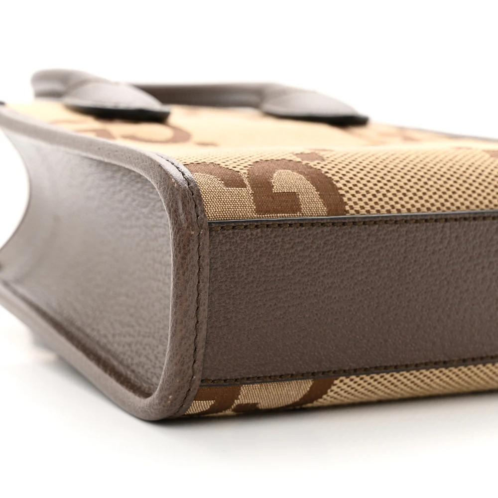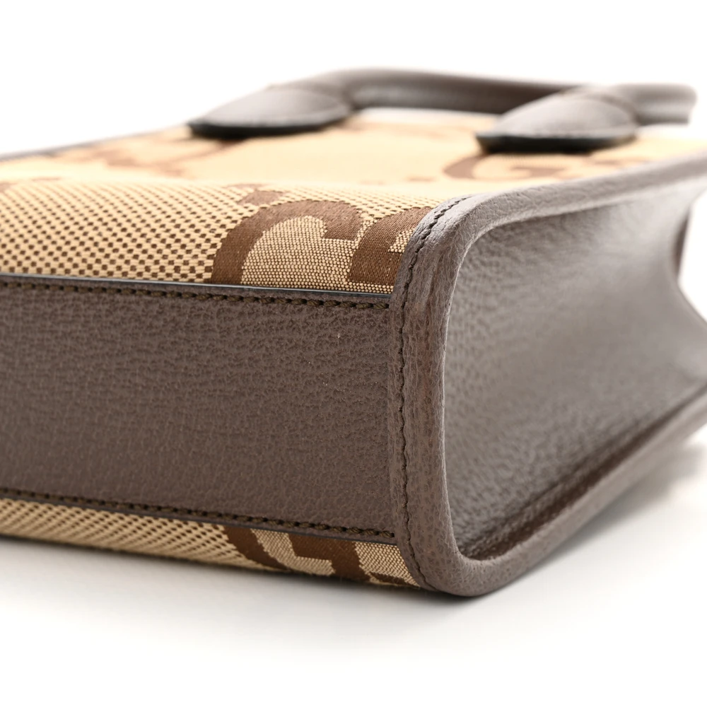 This Gucci Mini Vertical Tote showcases camel ebony textured dollar calfskin leather. The gold hardware complements the timeless monogram design. A practical yet stylish option for carrying essentials. Perfect for a sophisticated day out. Its compact structure ensures versatility.
