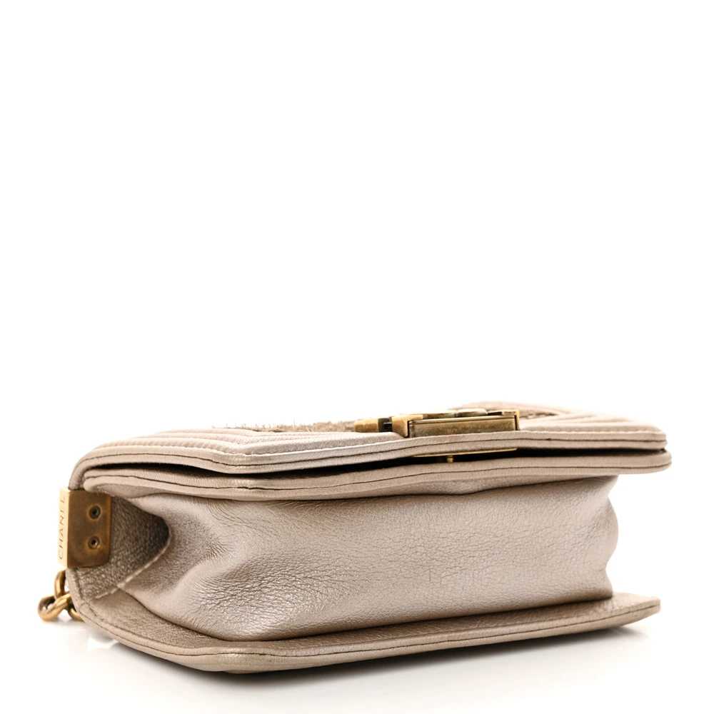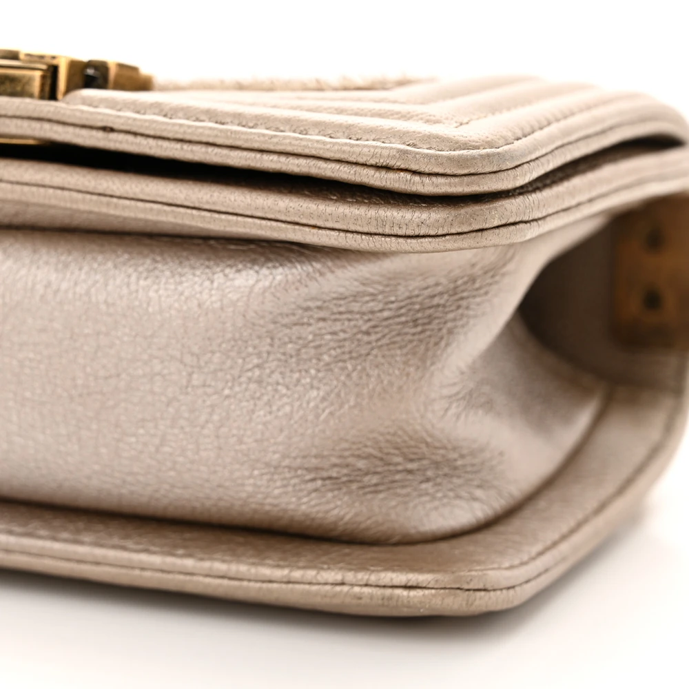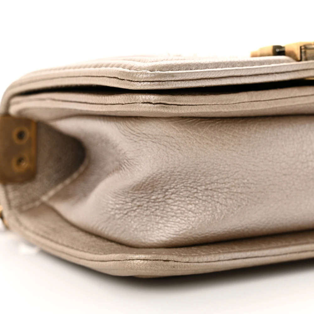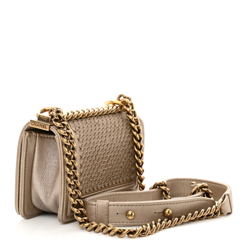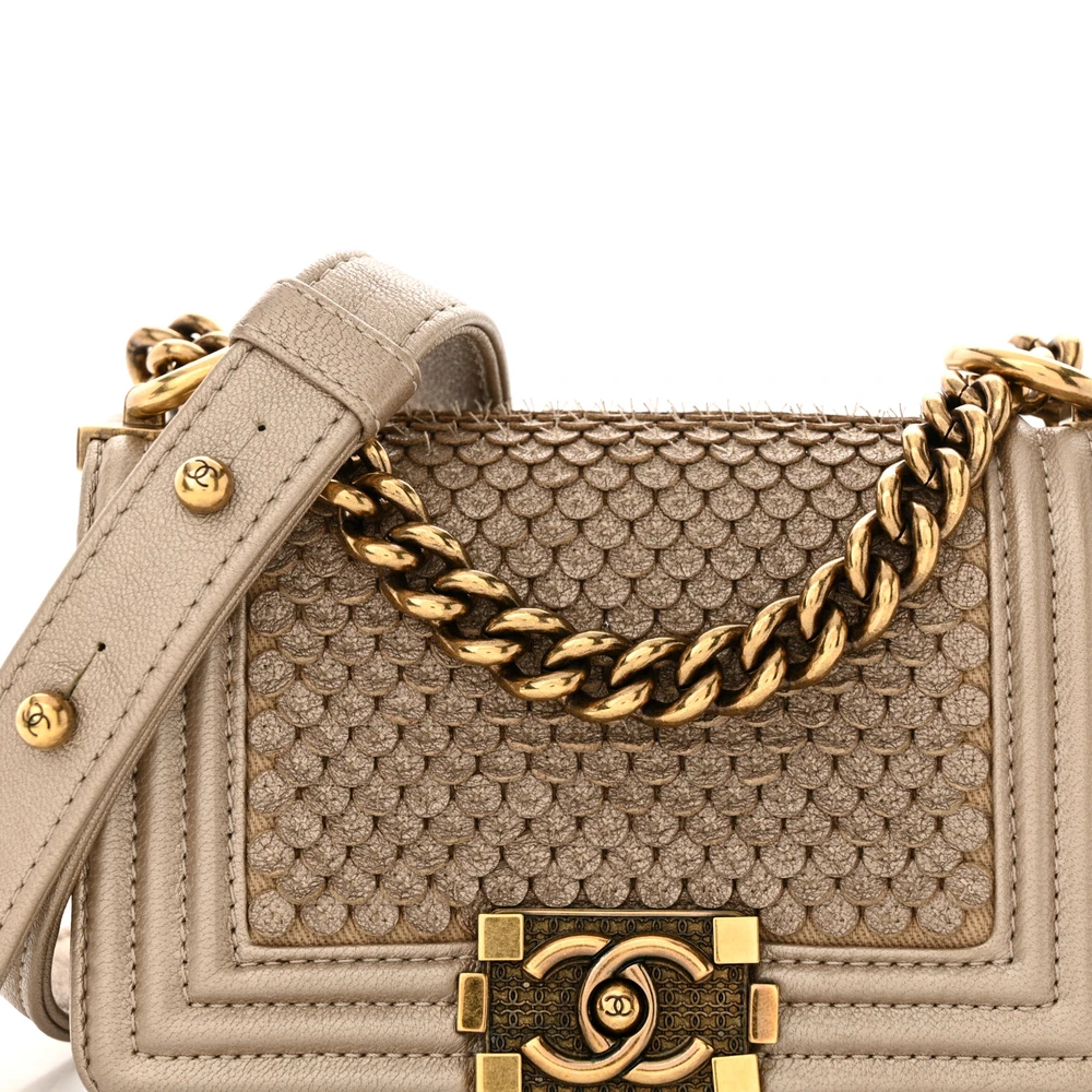 This Chanel Boy Flap Mini Scaled in Metallic Gold Quilted Lambskin Leather with Aged Gold Hardware is a bold and glamorous accessory. The scaled metallic lambskin leather adds texture and brilliance, while aged gold hardware provides a vintage-inspired touch. Compact yet functional, it’s perfect for evening wear or special occasions. The signature Boy clasp and chain strap enhance its iconic design. Ideal for those who love standout pieces with timeless appeal. A luxurious addition to any collection.