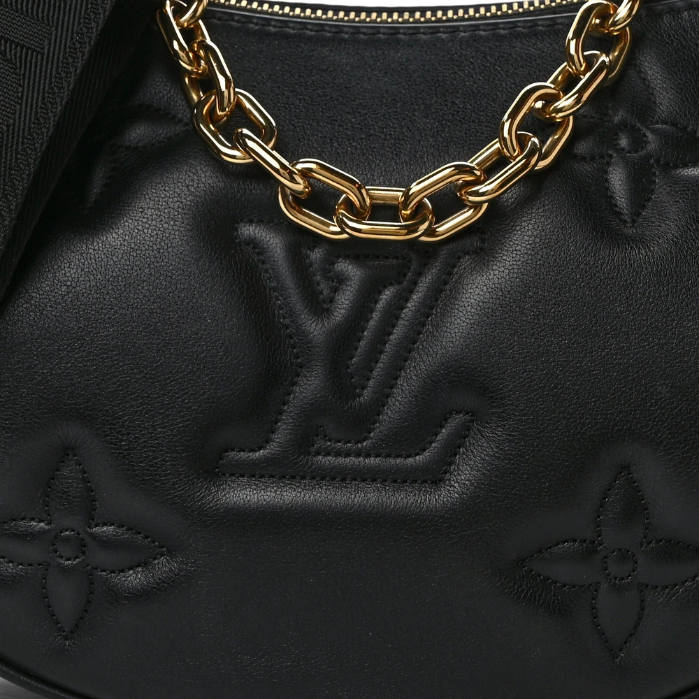 This Louis Vuitton Bubblegram Over The Moon PM Black Calfskin Leather Gold Hardware is a playful and chic handbag. Made from black calfskin leather, it features the whimsical Bubblegram design with gold hardware for an extra touch of luxury. The PM size is compact, yet spacious enough for your essentials. The top handle and detachable strap offer versatility for various styling options. Ideal for both day and evening wear, it makes a bold statement. A fun and stylish accessory that adds a pop of personality.