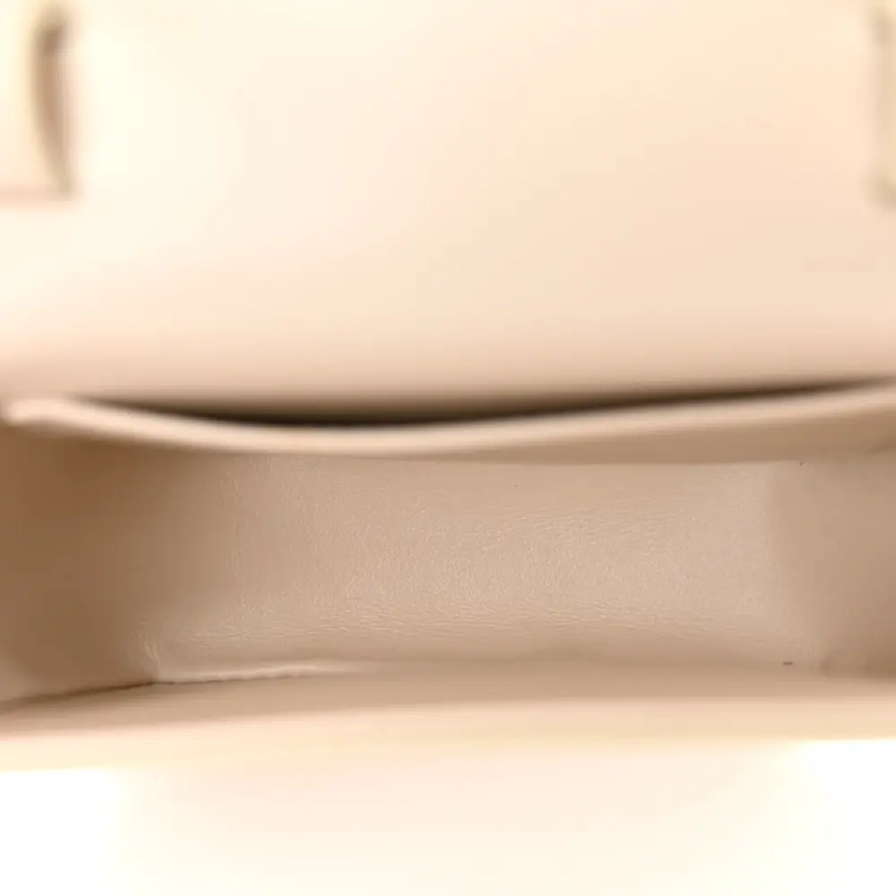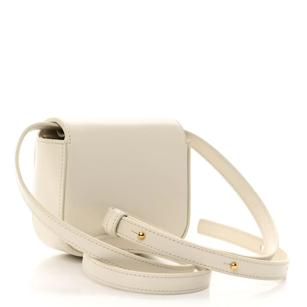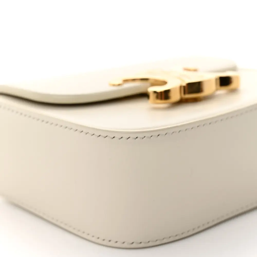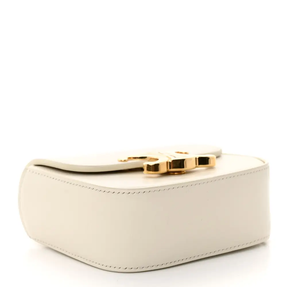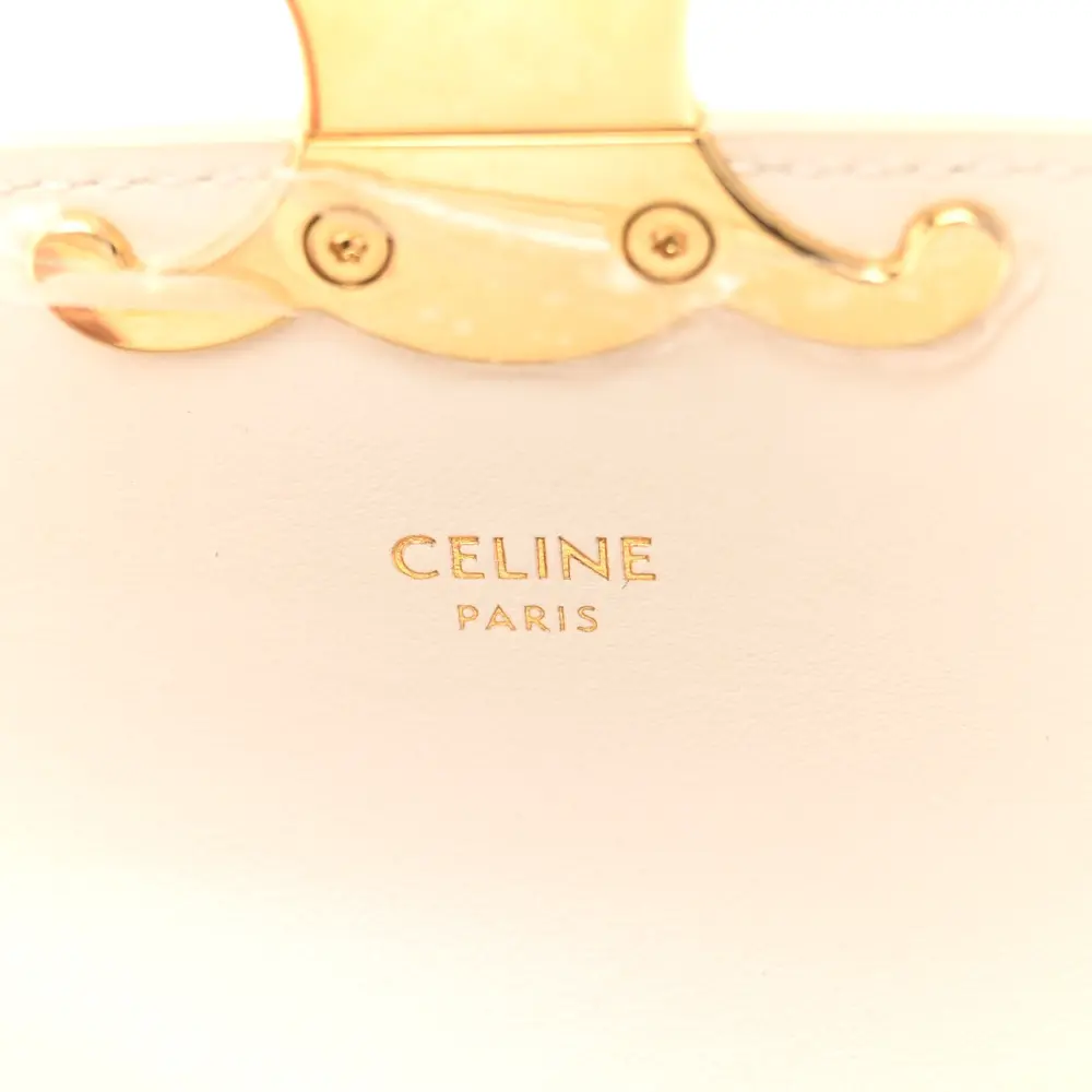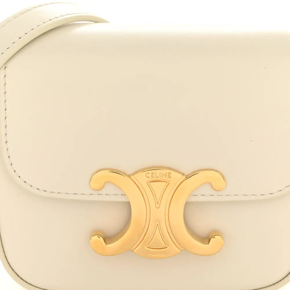 This Celine Mini Triomphe Shoulder Bag in Rice features shiny calfskin leather. Gold hardware adds a refined touch to its sleek silhouette. Compact and elegant, it’s perfect for modern accessorizing.