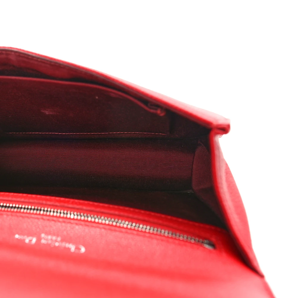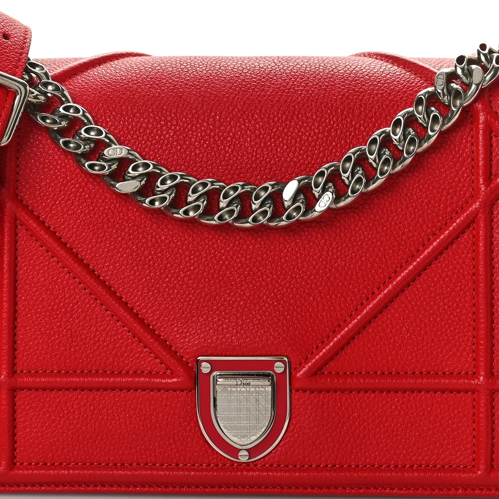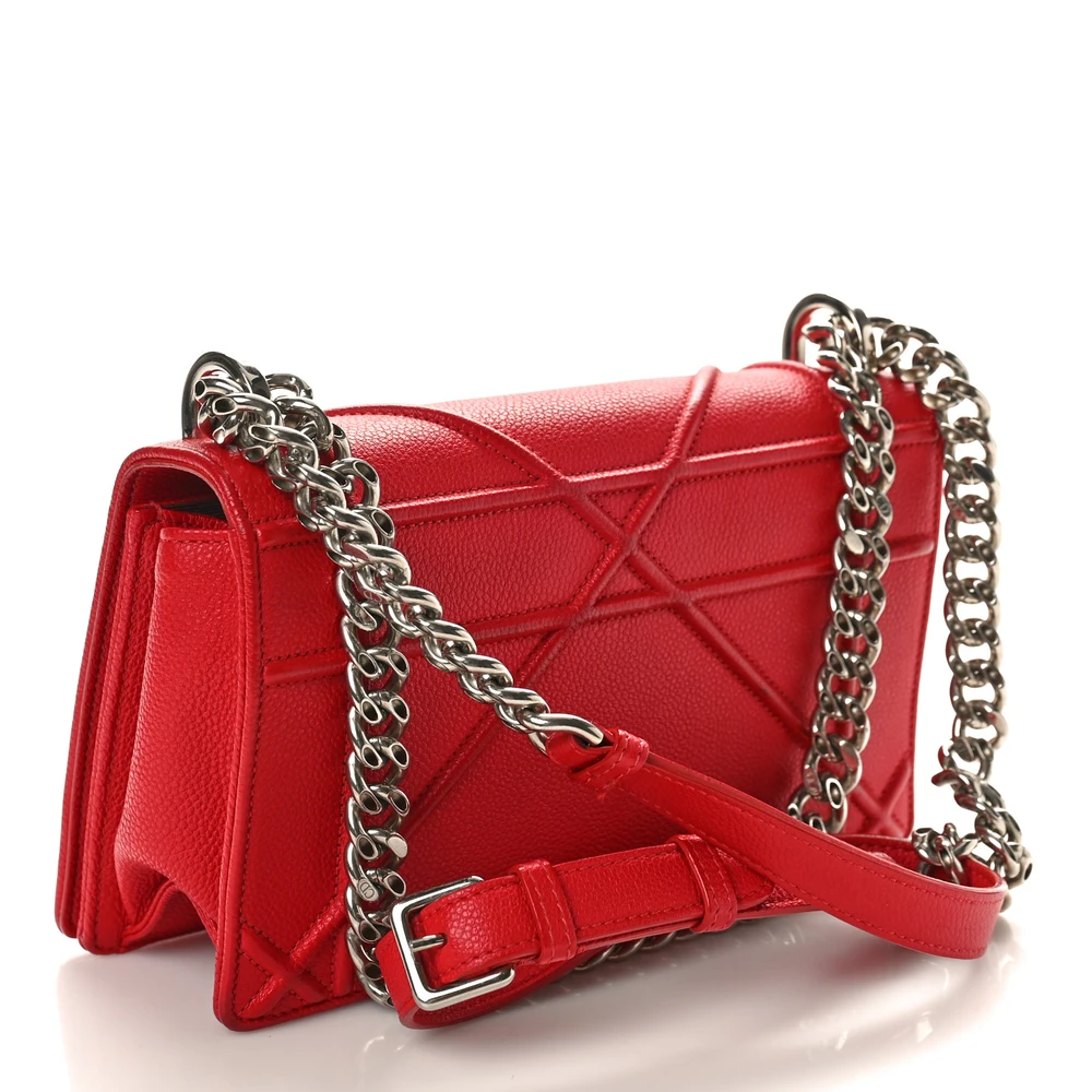 This Dior Small Diorama Flap Bag in Red Grained Calfskin Leather is a bold and chic accessory. Silver hardware enhances its vibrant red tone for a sleek finish. Compact and functional, it’s perfect for carrying essentials in style. The grained leather ensures durability and elegance. A versatile piece for casual or formal occasions. Make a statement with this timeless bag.