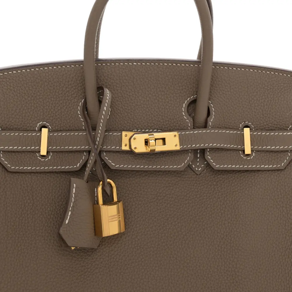This Hermès Birkin 25 in Etoupe Togo Leather combines classic design with modern functionality. The neutral tone is paired with gold hardware for a sophisticated finish. Its compact size makes it perfect for daily outings or formal events. Durable Togo leather ensures long-lasting elegance. A structured silhouette offers timeless appeal. Experience the luxury of Hermès with this iconic bag.