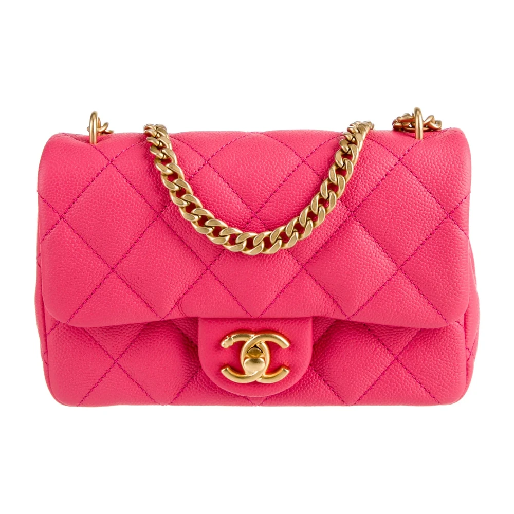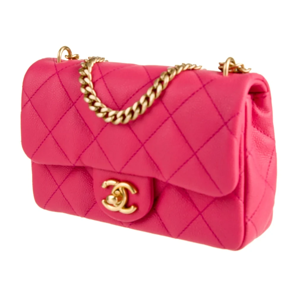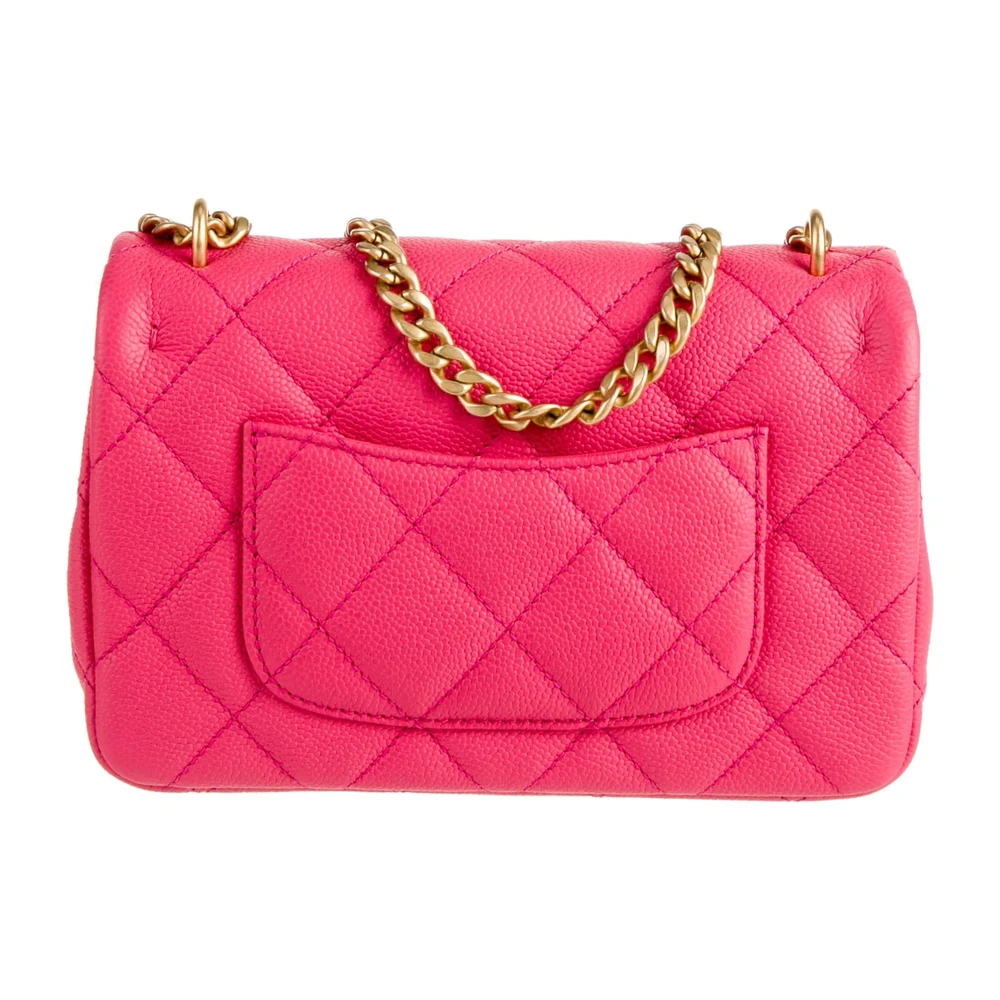 Lushentic Chanel Rectangular Sweetheart Crush Flap Bag Mini Pink Quilted Caviar Leather Gold Hardware