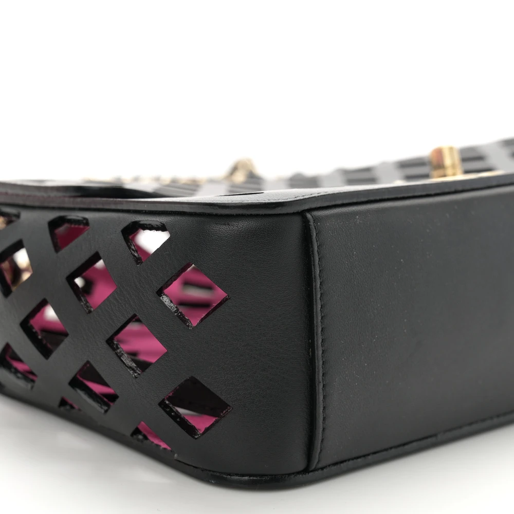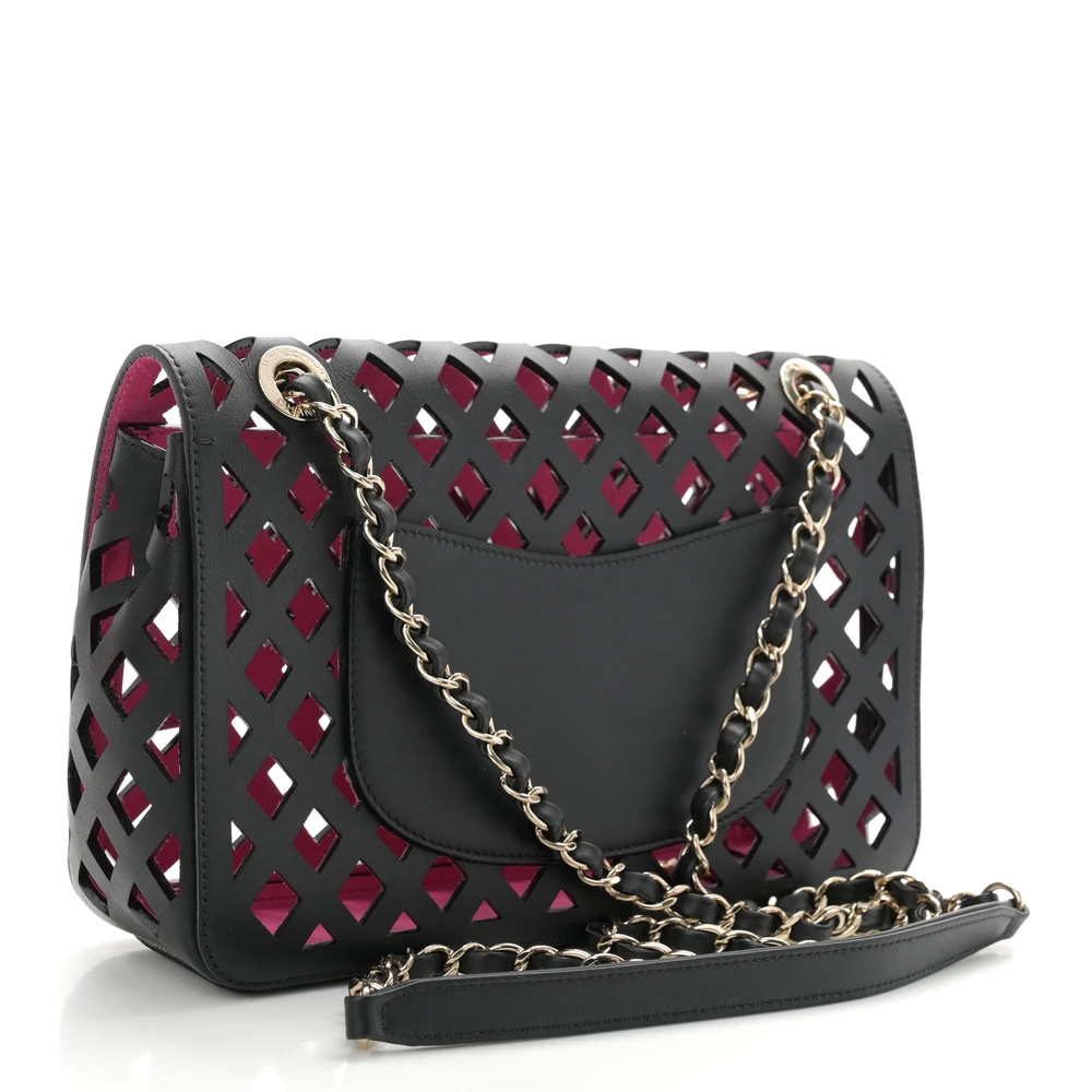 This Chanel Sea Through Flap Medium in Black Multicolor Lambskin Leather with Light Gold Hardware is a whimsical and artistic piece. The lambskin leather features a unique multicolor pattern, adding a playful touch to its classic design. Light gold hardware complements its vibrant look. Spacious enough for essentials, it’s perfect for day-to-evening wear. The structured flap closure ensures security and style. A creative addition to any high-fashion collection.
