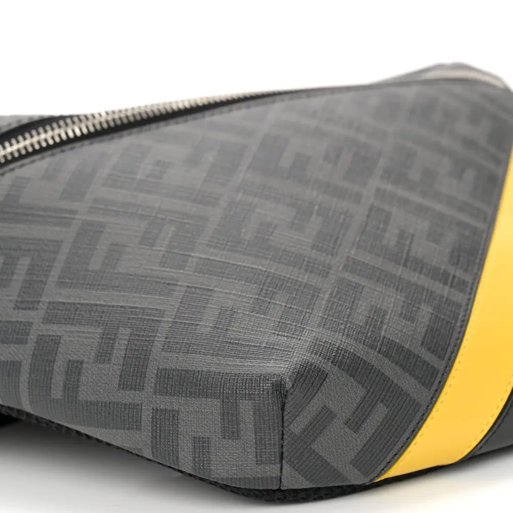This Fendi Century Logo FF 1974 Diagonal Belt Bag in Black/Sunflower Glazed Fabric is modern and functional. Silver hardware enhances its structured design and style. Adjustable strap offers versatile wear around the waist or crossbody. Spacious interior is perfect for carrying daily essentials. Sleek and bold, it’s ideal for on-the-go days. A contemporary choice for dynamic lifestyles.