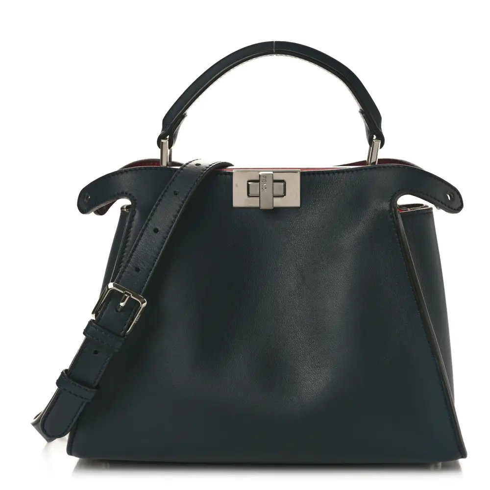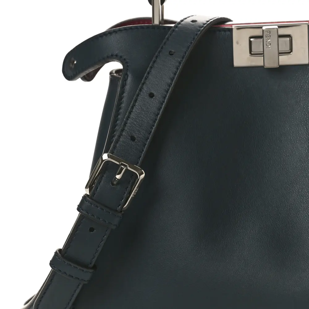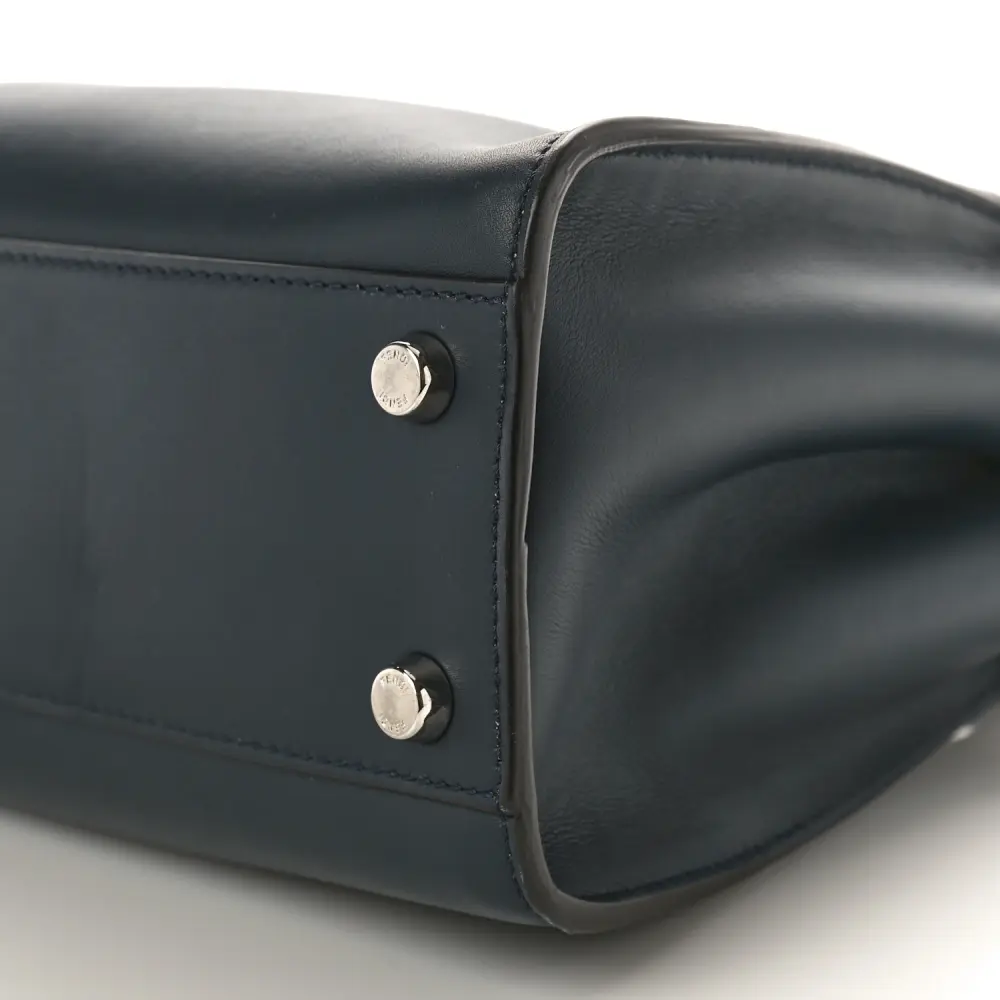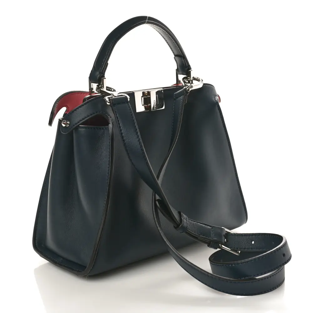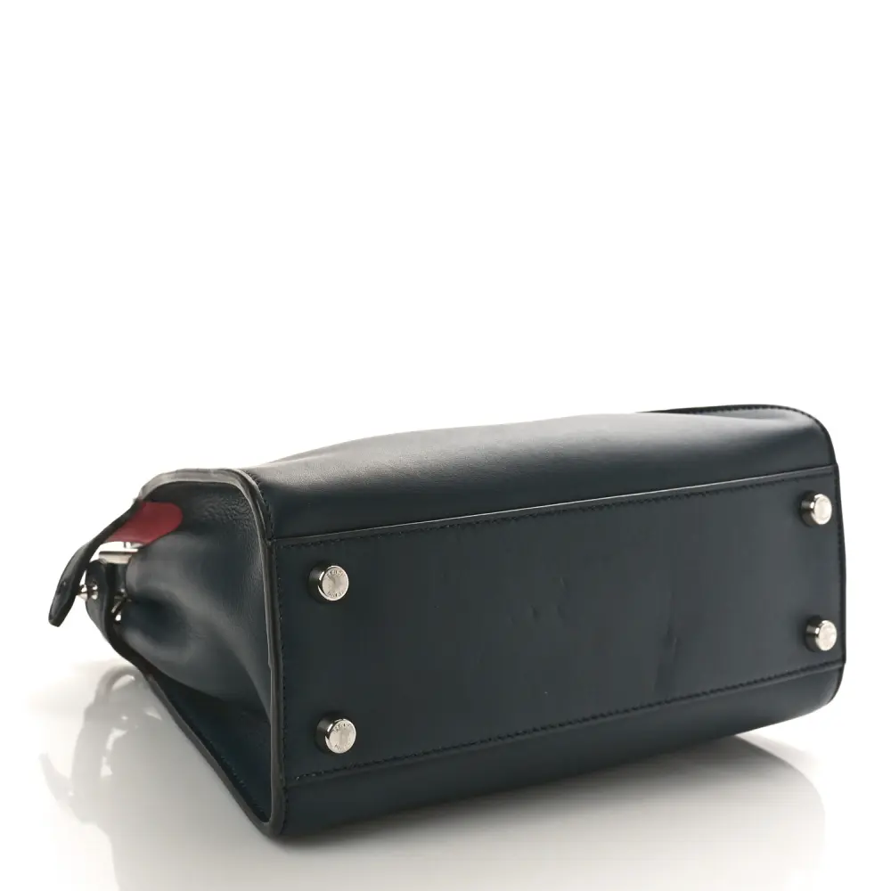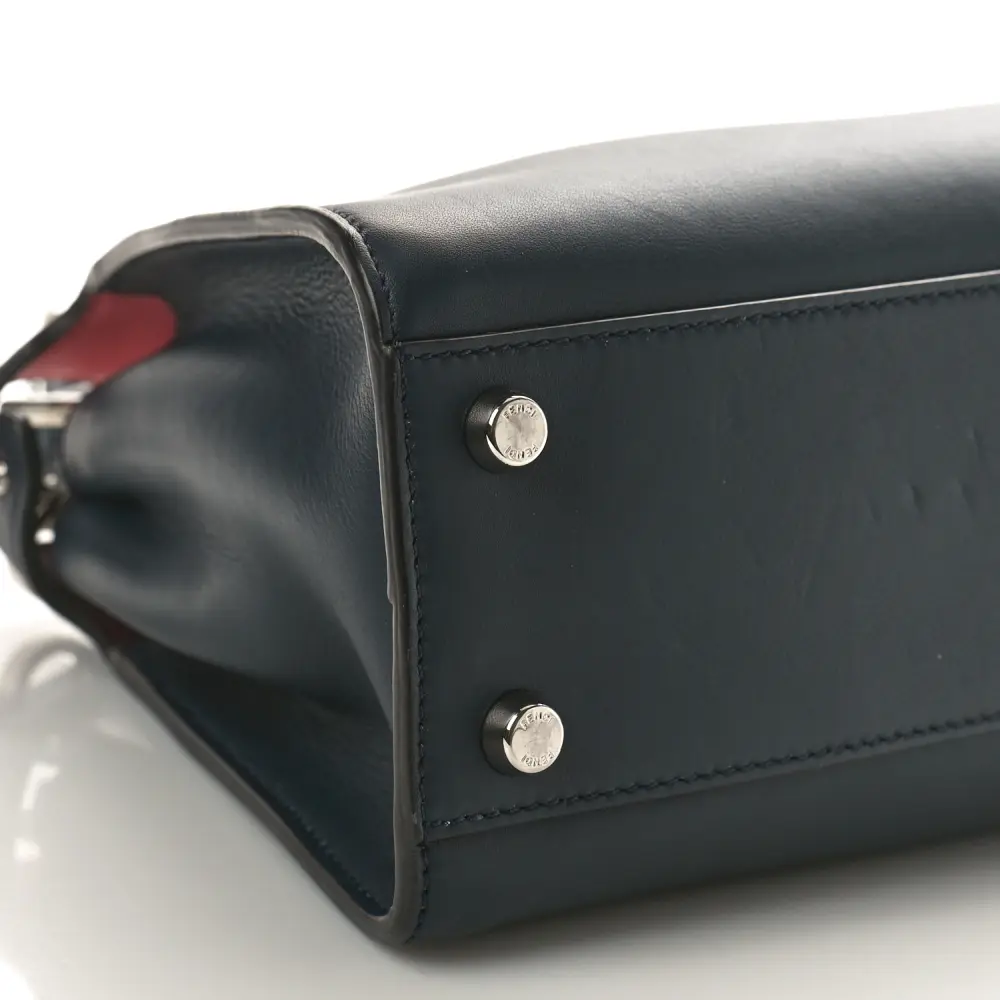This Fendi Medium Peekaboo Iconic Essentially Satchel in Blue Notte/Flamingo is versatile. Crafted in Tahiti Burro Vitello Leather with silver hardware. Spacious compartments offer organization for essentials. Perfect for professional or casual settings. A modern twist on a classic silhouette. Elegance meets practicality in every detail.