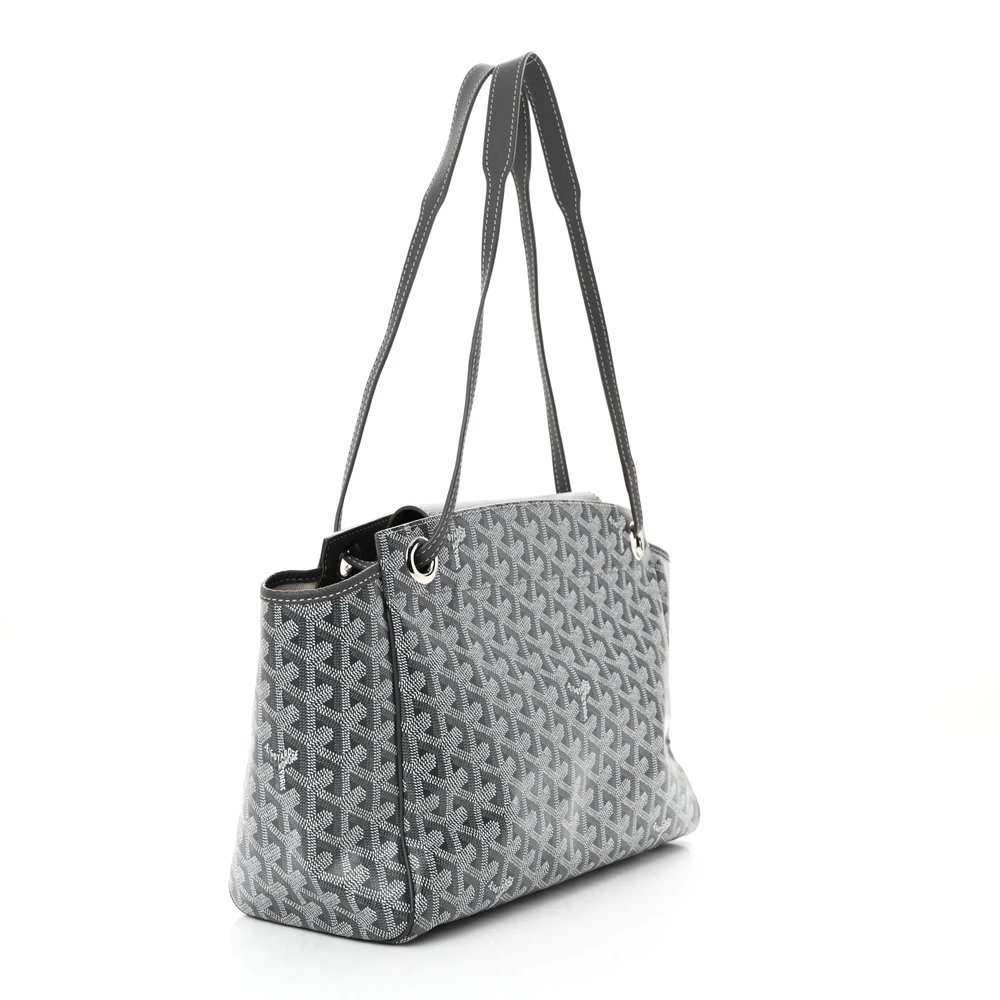 This Goyard Rouette Tote PM in Grey is crafted from Goyardine canvas with a structured and refined silhouette. The subtle grey tone adds elegance and versatility. Its compact size makes it ideal for daily use. A sophisticated and functional addition to any wardrobe.