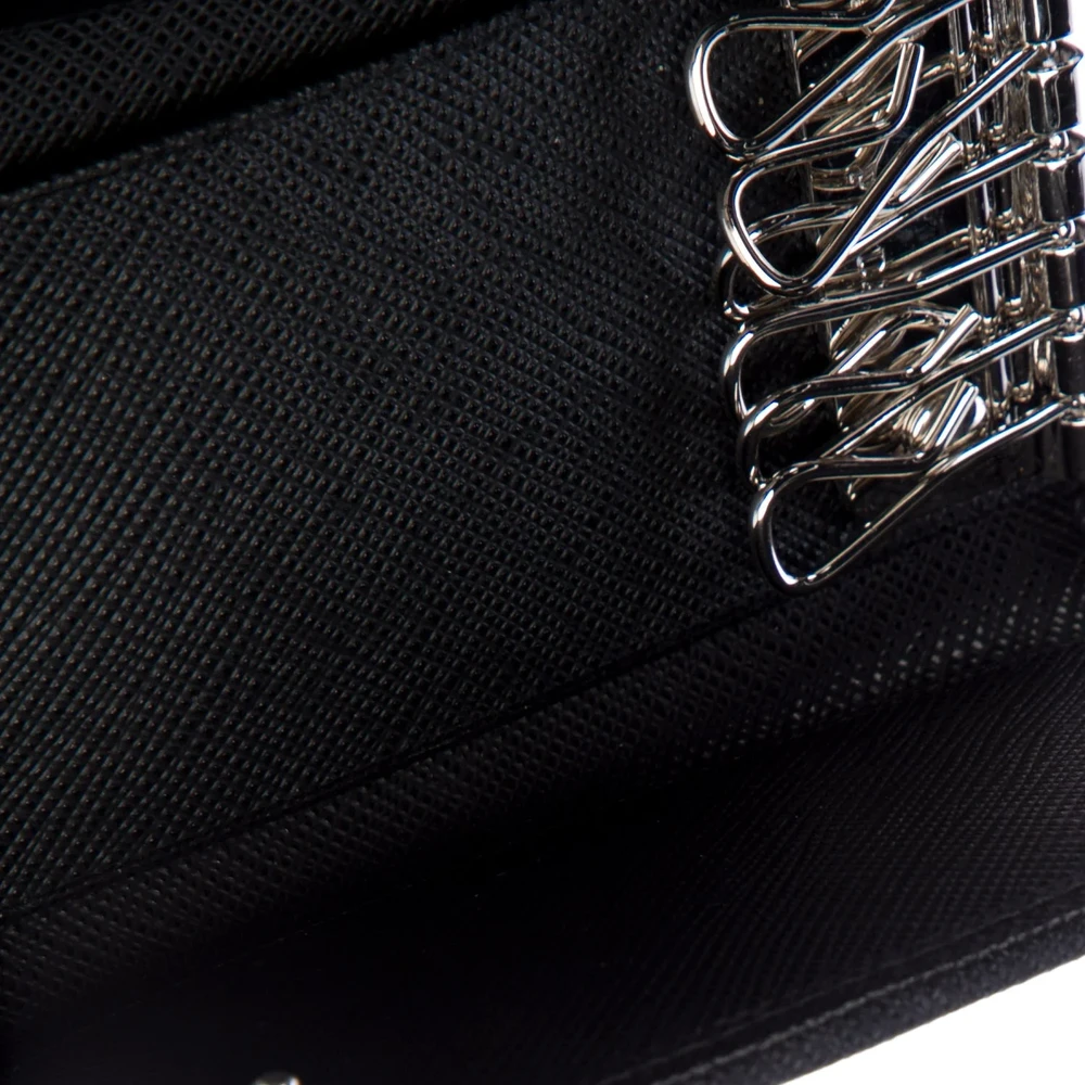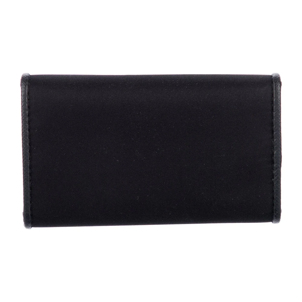 This Prada Small Card Holder is a sleek and practical accessory. Made from black tessuto, it features a durable and lightweight design. The silver hardware adds a modern touch, enhancing its minimalist aesthetic. Compact and versatile, it’s ideal for carrying daily essentials. This card holder conveys functional elegance with a modern edge.
