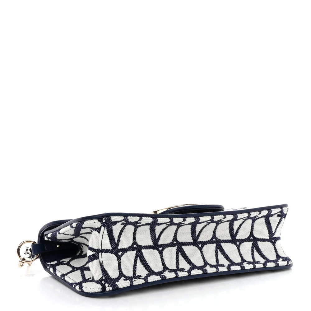 This Valentino Garavani Small VLogo Locò Shoulder Bag in White/Worker is minimalist and elegant. Toile Iconographe cotton with silver hardware offers a modern aesthetic. Compact for carrying essentials in style. Perfect for casual or semi-formal occasions. A timeless accessory.