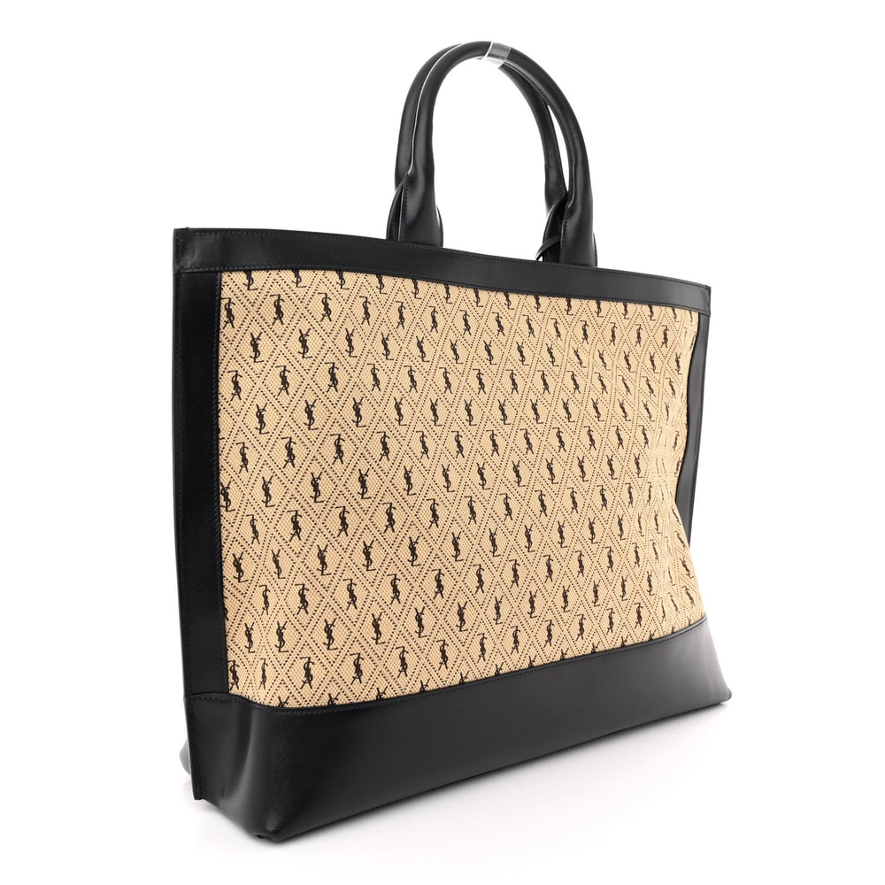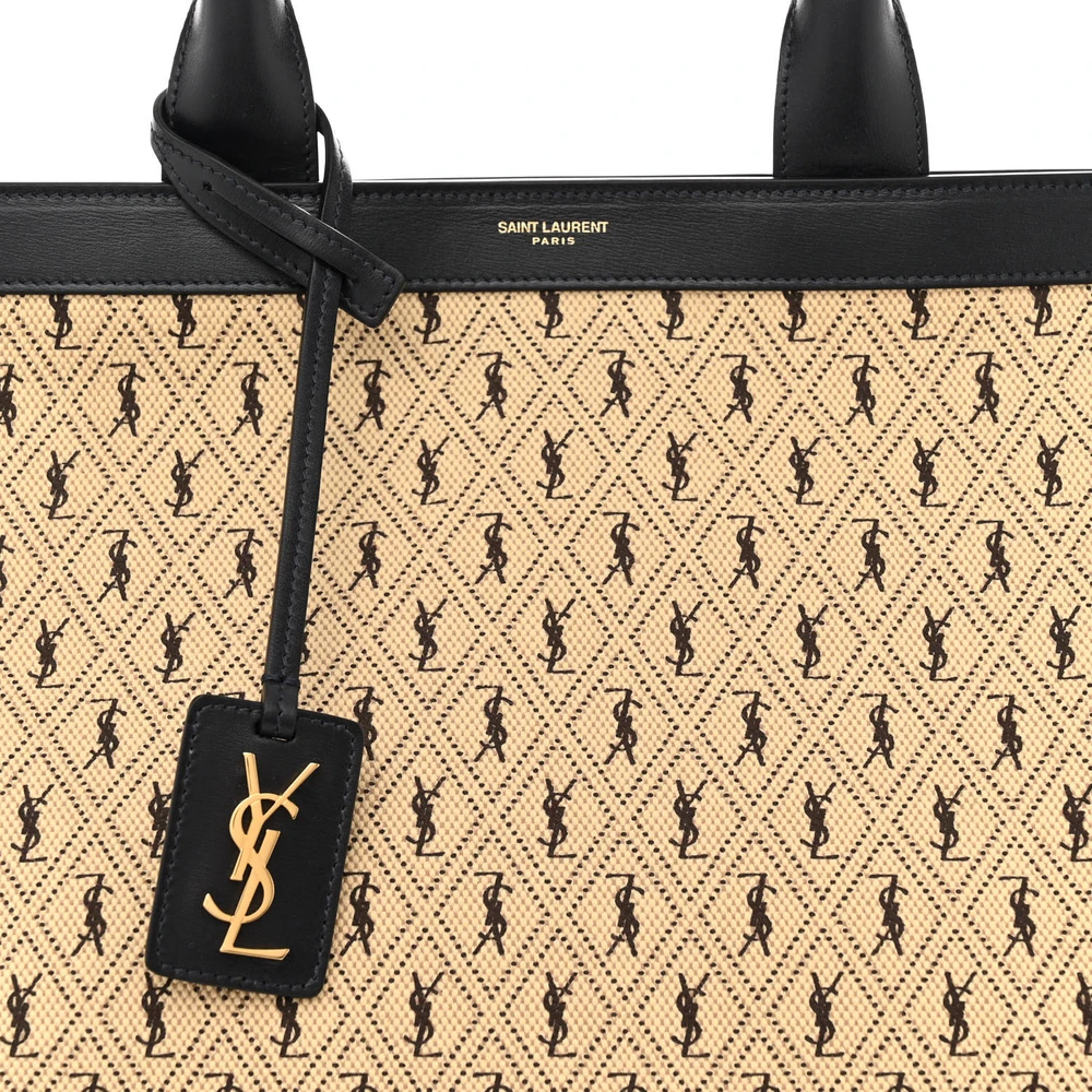 This Large All-Over Cabas Tote in Beige and Black Monogram Canvas is a spacious and stylish accessory. Featuring a minimalist design, it is perfect for travel or daily use. The durable material and roomy interior ensure practicality, while the subtle branding adds sophistication. A versatile tote for effortless styling.