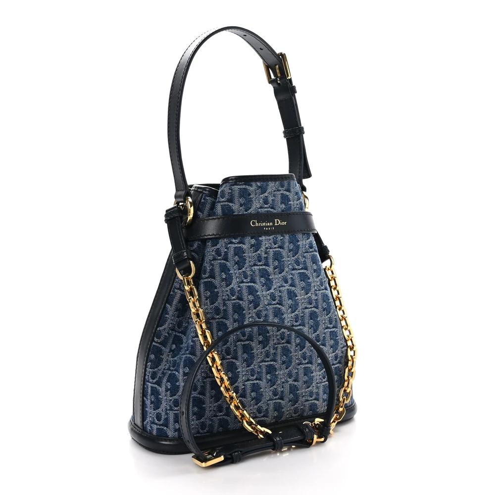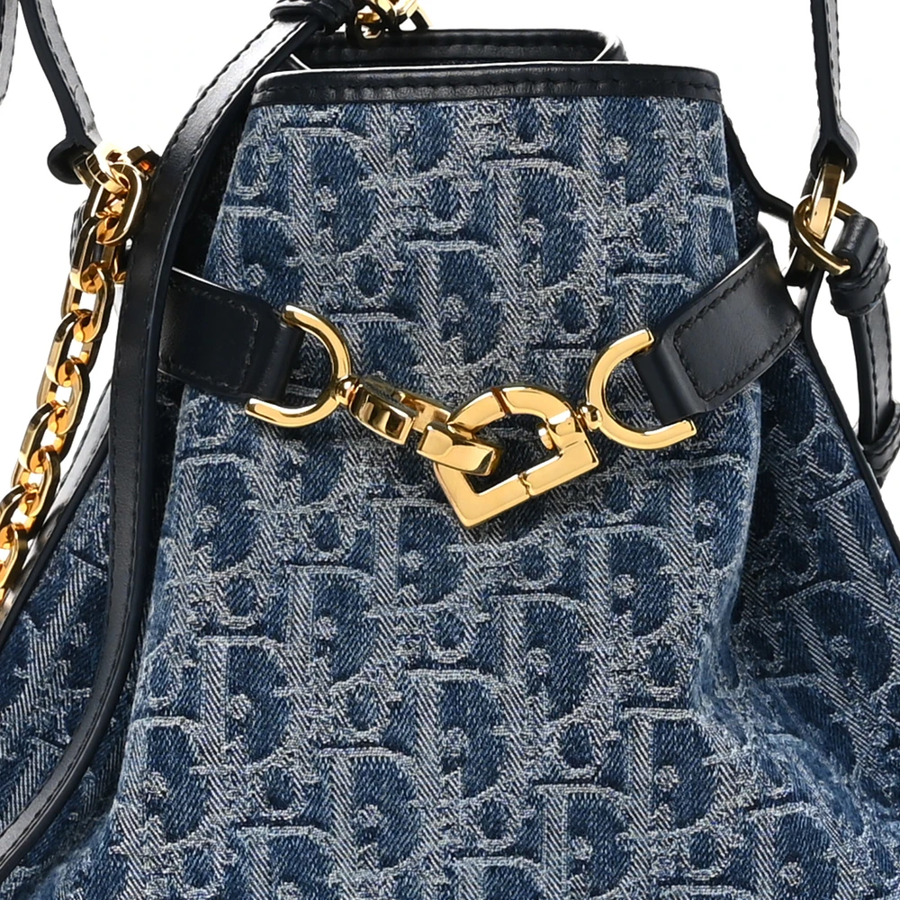 This Dior Medium C’est Chain Bucket Bag in Blue Oblique Canvas is a bold and stylish accessory. Gold hardware complements its modern design, making it perfect for casual outings. Spacious yet lightweight, it’s a versatile piece for on-the-go elegance.