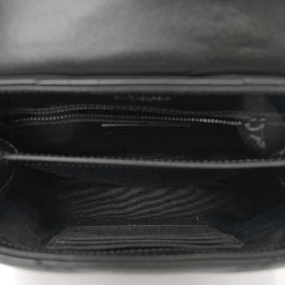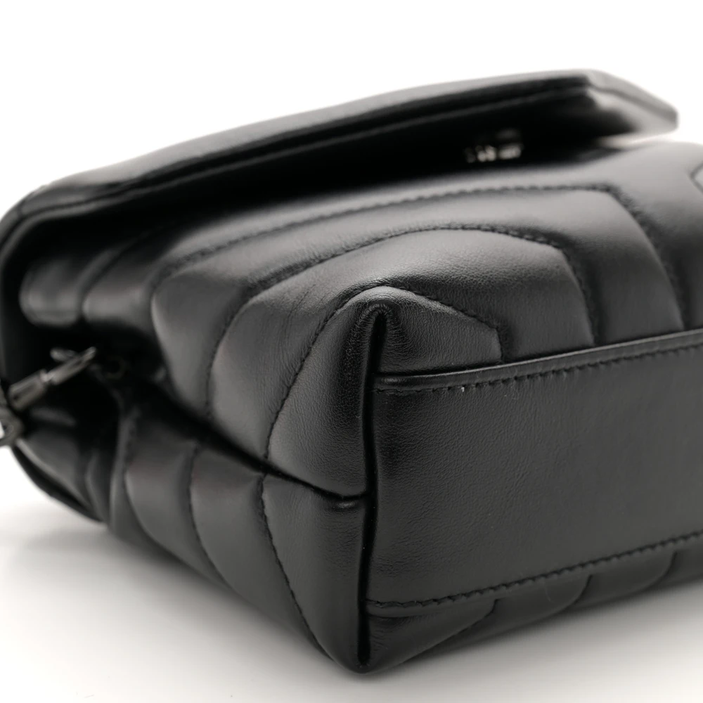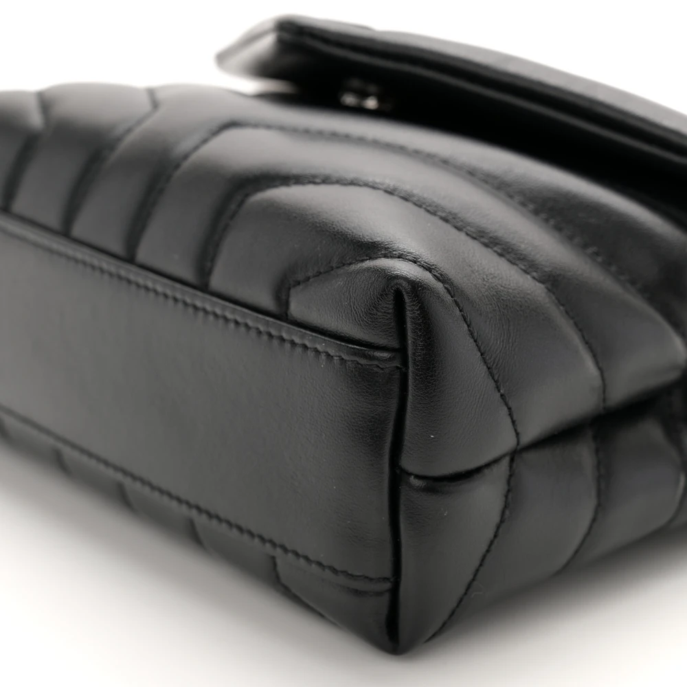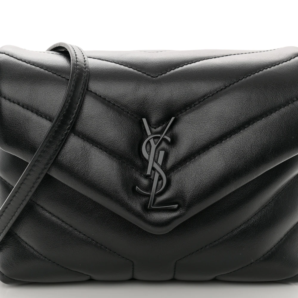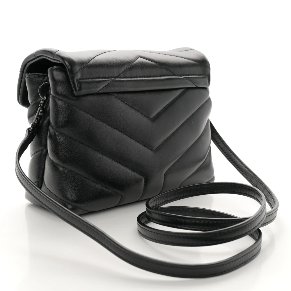 This Mini Loulou Crossbody Bag in Black showcases Y-Quilted Monochrome Monogram Calfskin Leather with tonal black hardware. The compact design is ideal for everyday wear, featuring a main compartment and magnetic closure for security. The adjustable strap offers versatile styling options, ensuring both comfort and elegance. Its monochrome finish lends a modern sophistication, making it a standout accessory for any outfit.