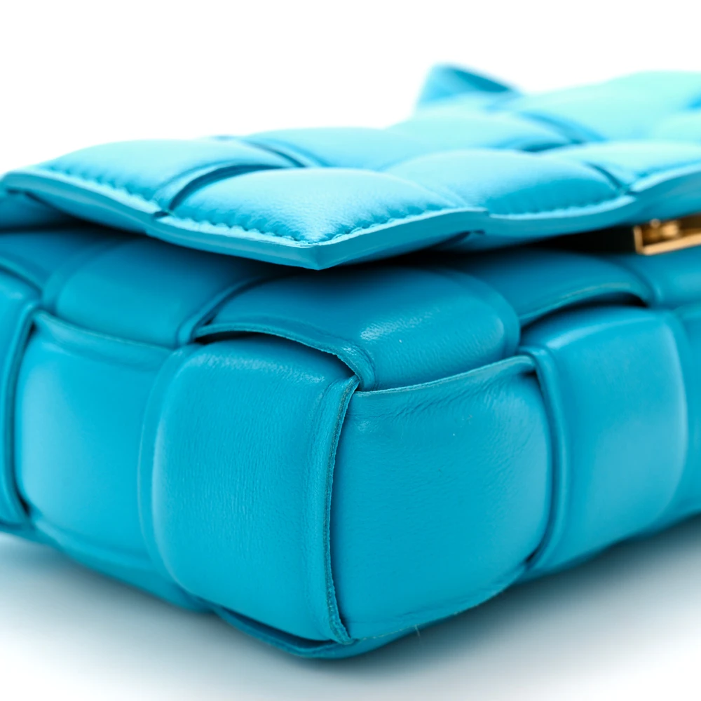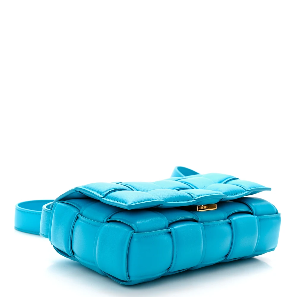 This Bottega Veneta Small Maxi Intreccio Padded Cassette Crossbody Bag in Pool is a bold, modern accessory. Nappa leather and woven details enhance its luxurious appeal. Spacious yet sleek, it’s perfect for daily use. A statement piece for casual or formal outfits. Redefine your style with this iconic bag.
