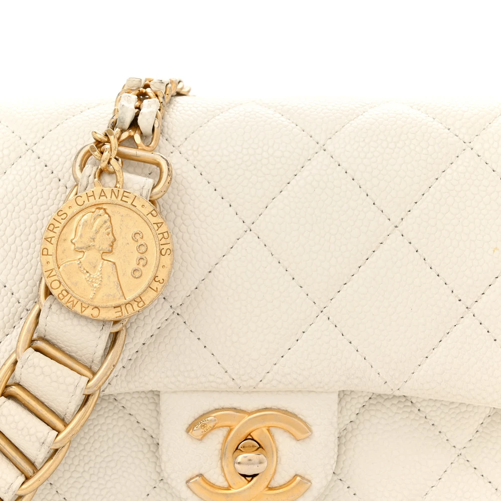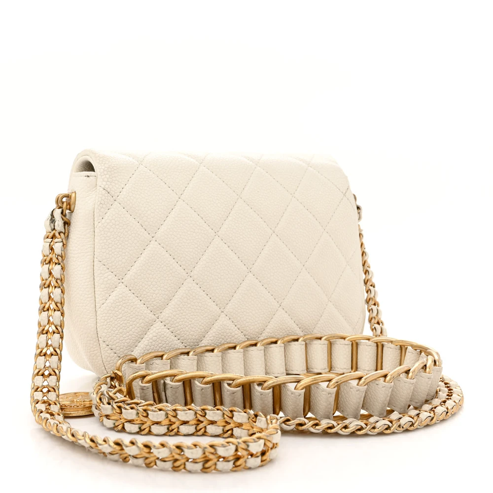 This Chanel Chain Soul Flap Mini in White Quilted Caviar Leather with Gold Hardware is a playful yet elegant accessory. The durable caviar leather and compact size make it perfect for day-to-night transitions. Gold hardware adds a touch of refinement, complementing its sleek design. The quilted pattern ensures timeless Chanel appeal, ideal for any occasion. Compact yet practical, it offers just enough room for small essentials. A versatile and stylish piece for those who love understated luxury.