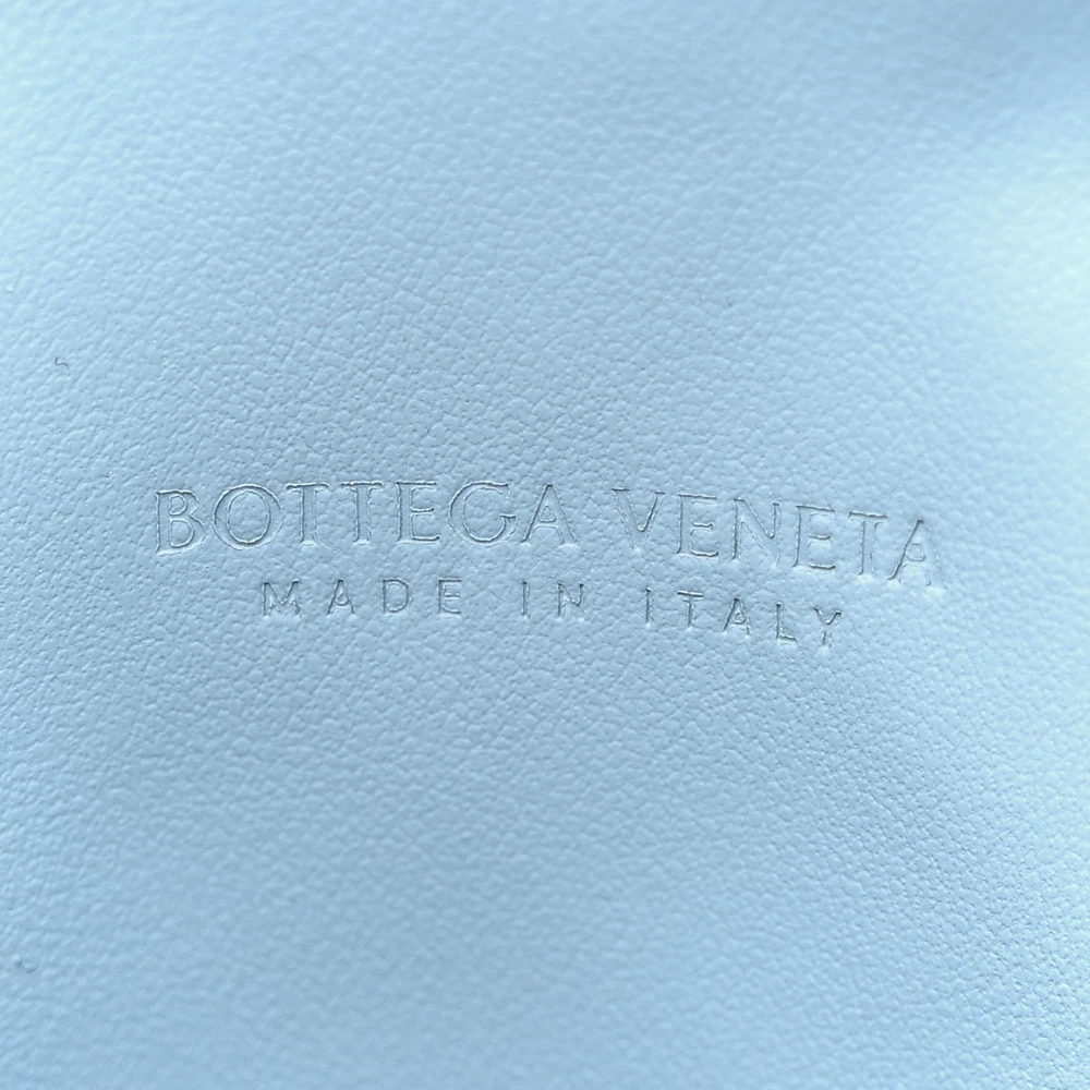 This Bottega Veneta Mini Intrecciato Wallace in Ice showcases a minimalist yet striking design. Made from nappa calfskin leather, it features the brand’s signature weaving technique for a touch of timeless elegance. Its compact size makes it ideal for carrying your essentials without adding bulk. The soft ice color enhances its modern appeal, making it suitable for a variety of occasions. A refined accessory that effortlessly elevates your style.