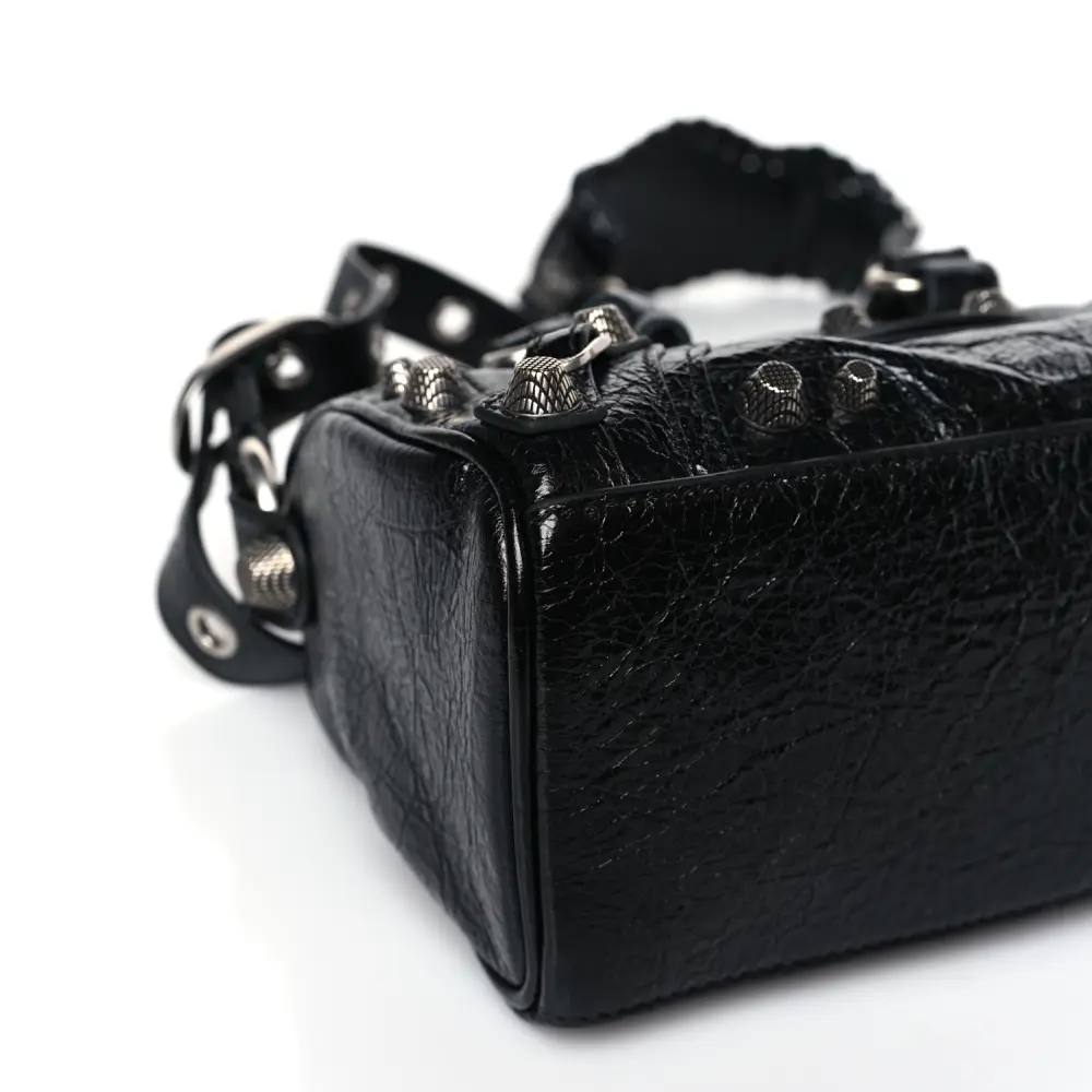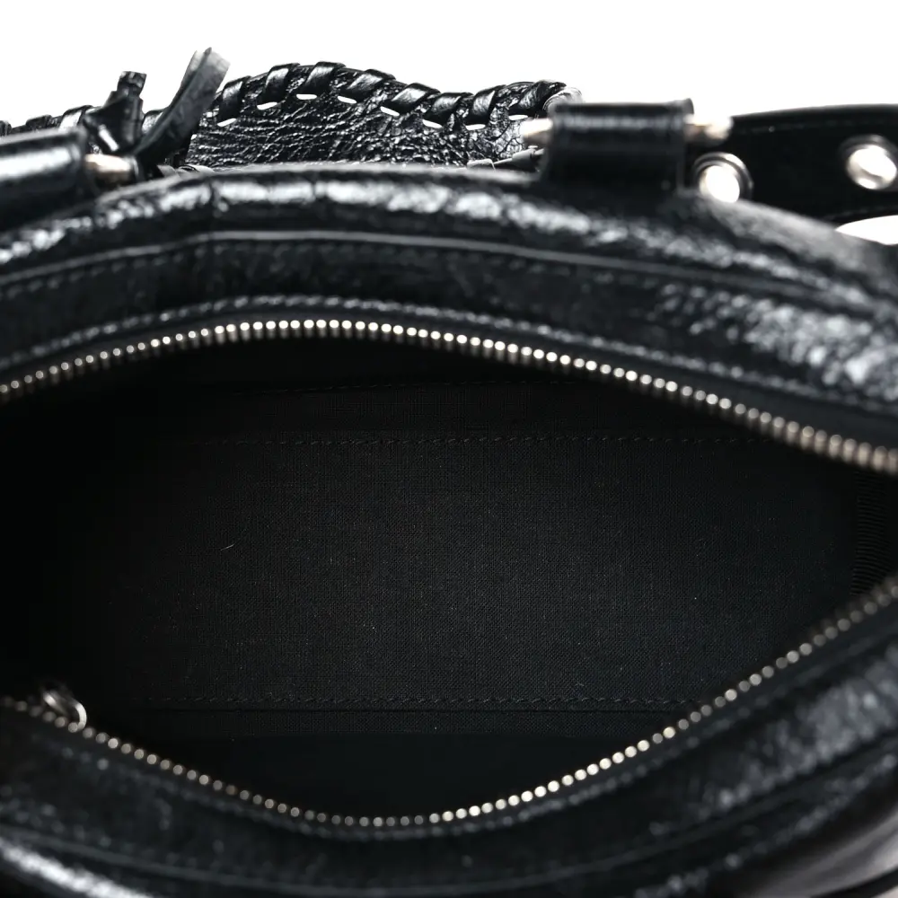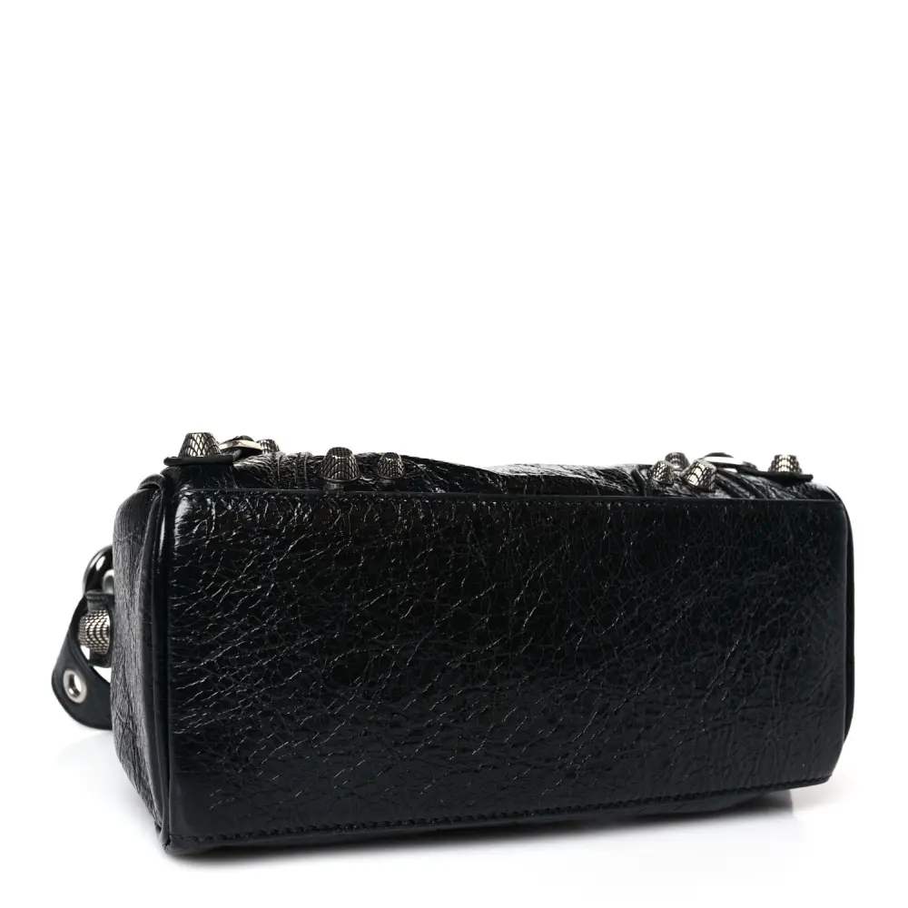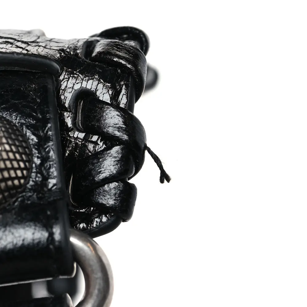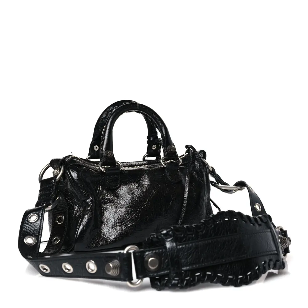 This Balenciaga Mini Le Cagole Duffle Crossbody Bag in Black is crafted from Agneau Arena leather for a soft yet durable finish. Featuring silver hardware, this versatile design combines functionality with edgy style. Compact and spacious enough for essentials, it’s perfect for on-the-go wear. The adjustable crossbody strap ensures comfort and convenience. A must-have for fans of contemporary fashion.