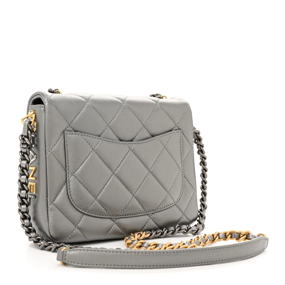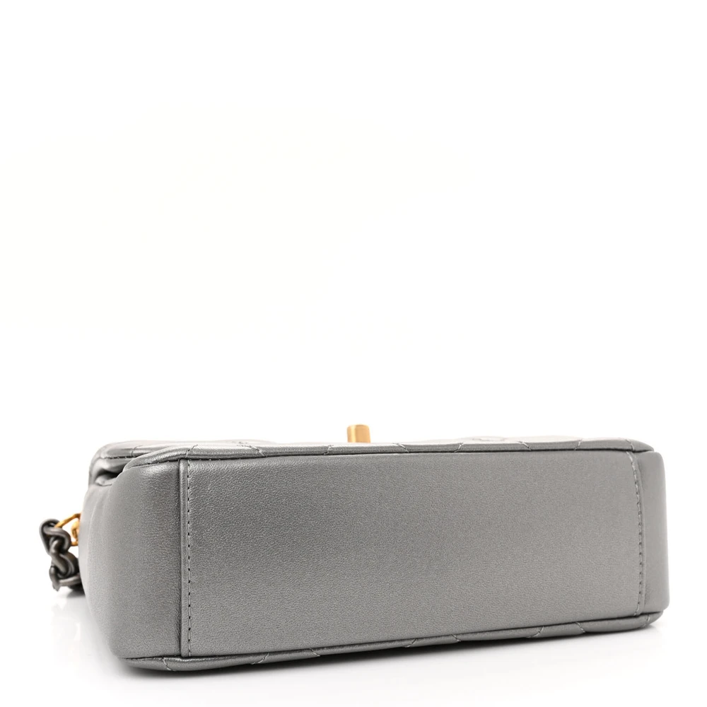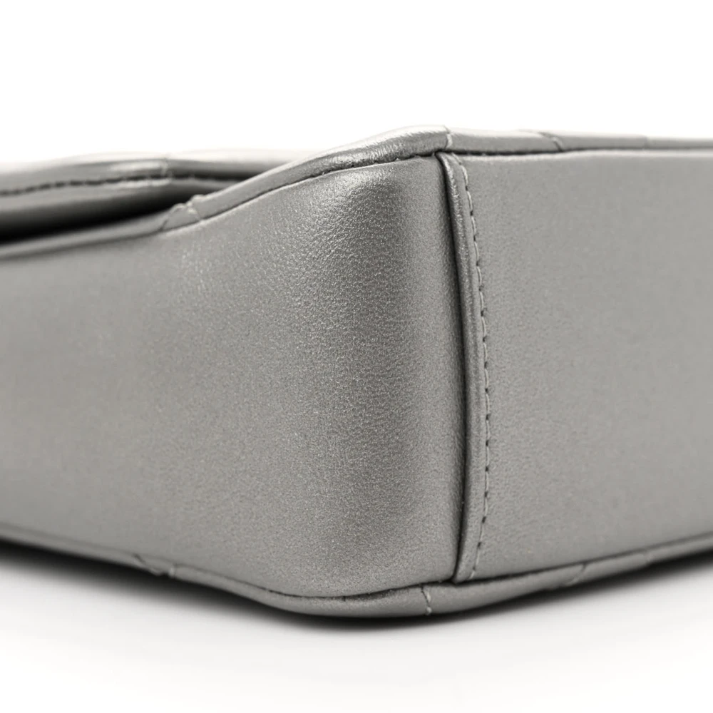This Chanel Side Note Flap Small in Metallic Grey is crafted from quilted lambskin leather with mixed metal hardware. The metallic sheen adds a modern and luxurious touch. Compact yet functional, it’s perfect for essentials and daily use. The structured shape ensures a polished and sleek look. A bold accessory to elevate any outfit.