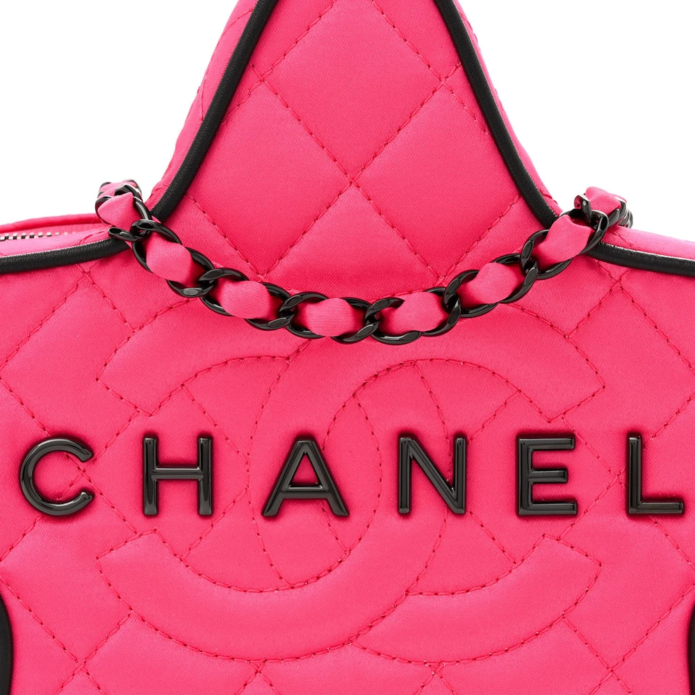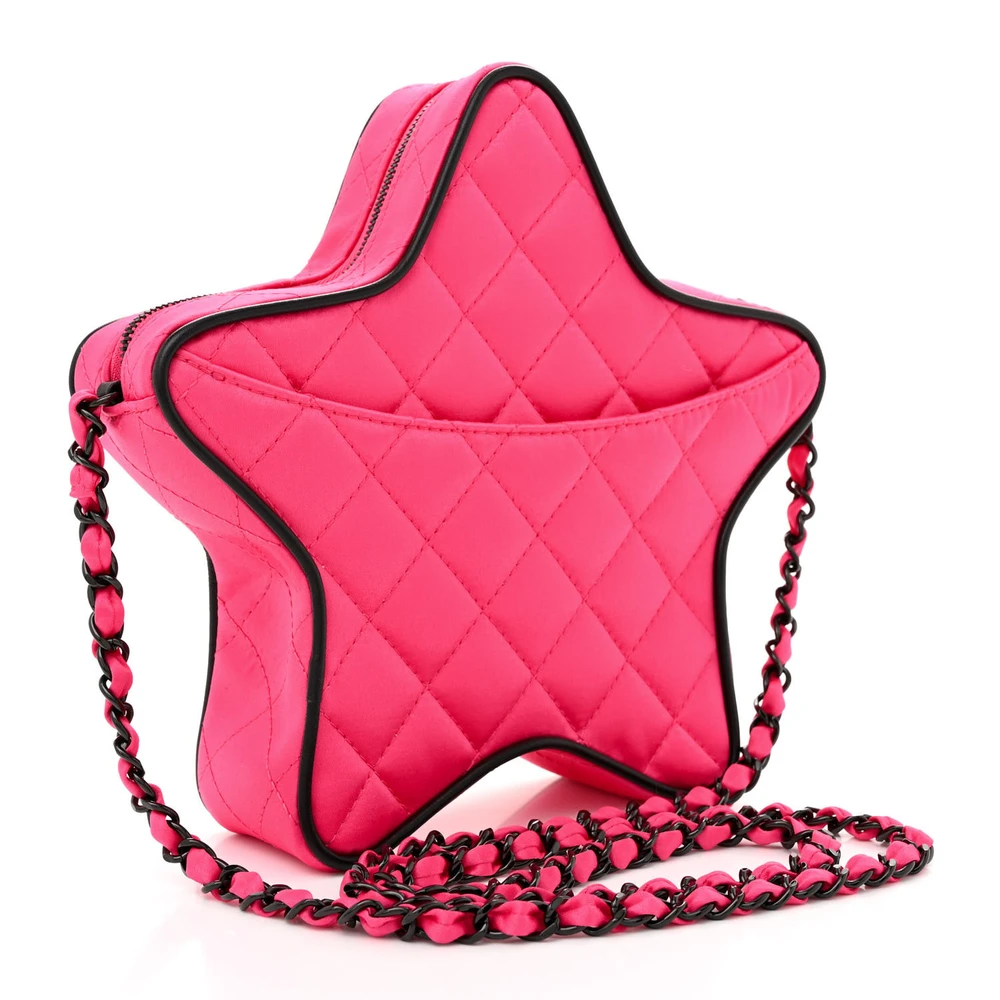 This Chanel Walk Of Fame Star Small in Fuchsia/Black Quilted Satin with Black Hardware is a glamorous and eye-catching accessory. The quilted satin fabric features a star design, adding a playful element to its luxurious aesthetic. Black hardware enhances its bold color palette. Compact and chic, it’s perfect for evening occasions or red-carpet events. A statement piece for those who love unique and stylish accessories.