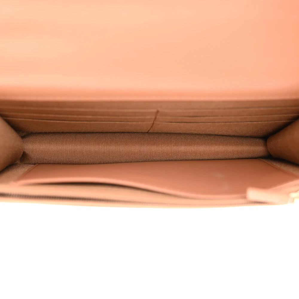 This Chanel Wallet On Chain (WOC) Chanel 19 Small in Brown Quilted Lambskin Leather with Gold Hardware is a luxurious and functional piece. The quilted lambskin leather offers a soft, elegant texture, while gold hardware enhances its timeless charm. Compact yet spacious, it’s perfect for cards, cash, and small essentials. The chain strap allows for versatile wear, whether crossbody or as a clutch. Ideal for both casual outings and formal events. A chic and practical addition to any collection.