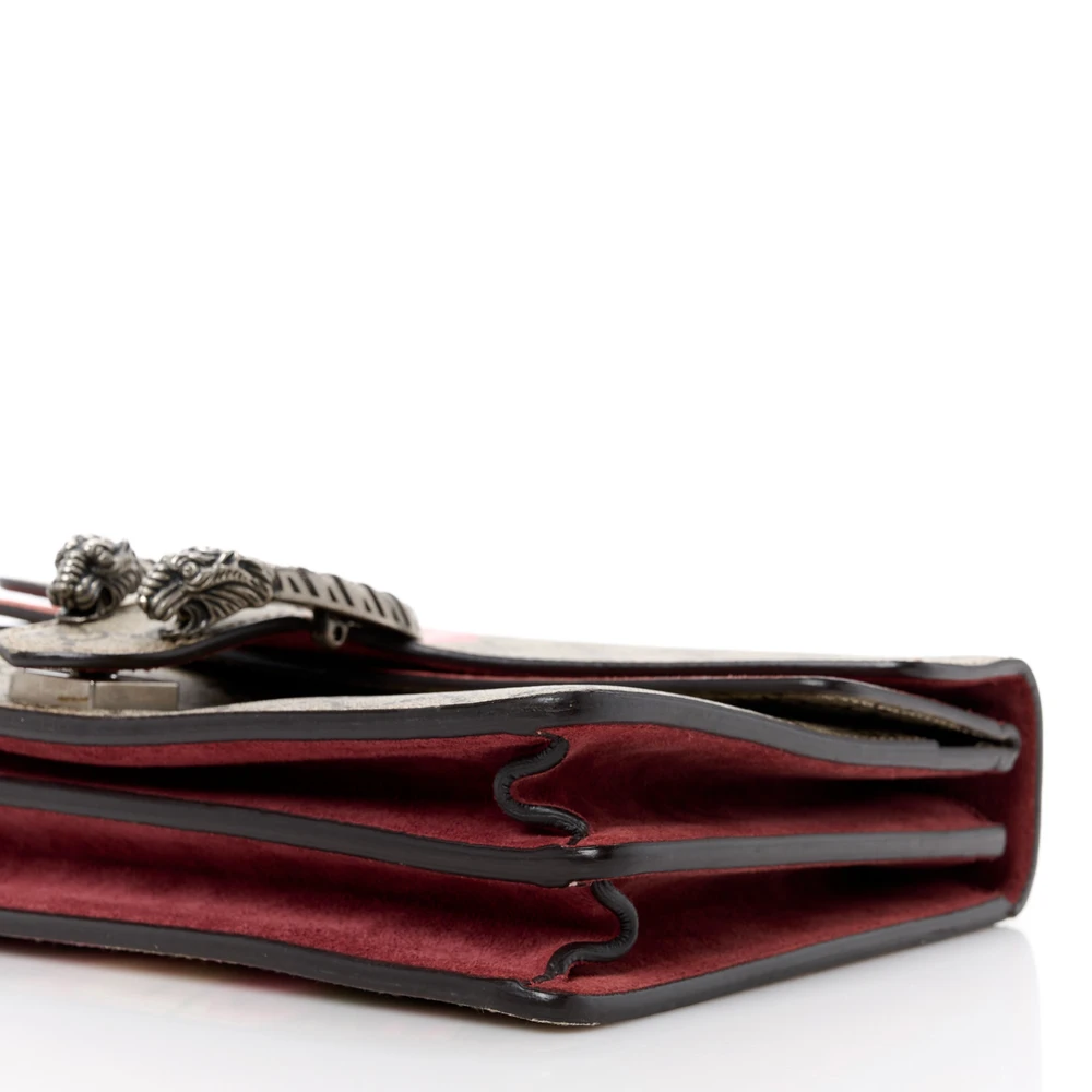 This Gucci Small Blooms Dionysus Shoulder Bag showcases beige multicolor GG Supreme monogram canvas. Aged silver hardware enhances its vintage-inspired design. Spacious interior perfect for daily use. A statement piece with timeless appeal.