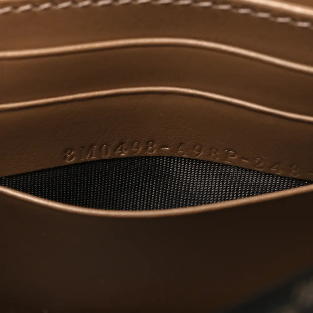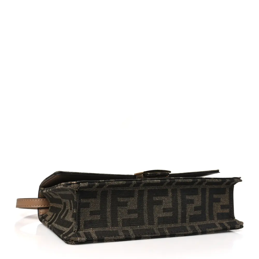 This Fendi FF 1974 Wallet On Chain in Tobacco/Moro is elegant. Jacquard Fabric with gold hardware enhances its refined design. Compact yet spacious for your essentials. Perfect for transitioning from casual to formal settings. A versatile addition to any accessory collection. Sophistication meets practicality in every detail.