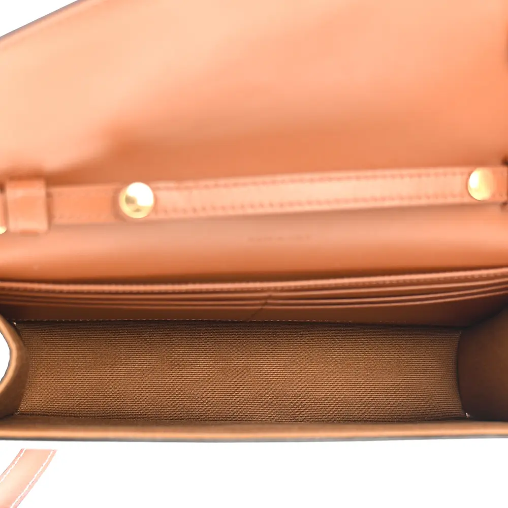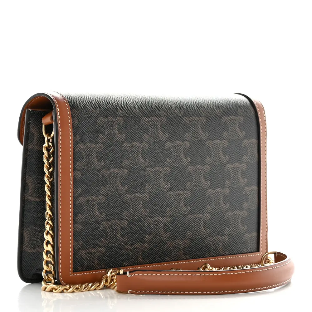 This Celine Small Margo Wallet on Chain in Tan features Triomphe canvas and calfskin leather with gold hardware. Compact and functional, it’s ideal for carrying essentials. The chain strap adds an elegant touch for versatile wear. A polished accessory for both casual and formal events. A timeless addition to any collection.