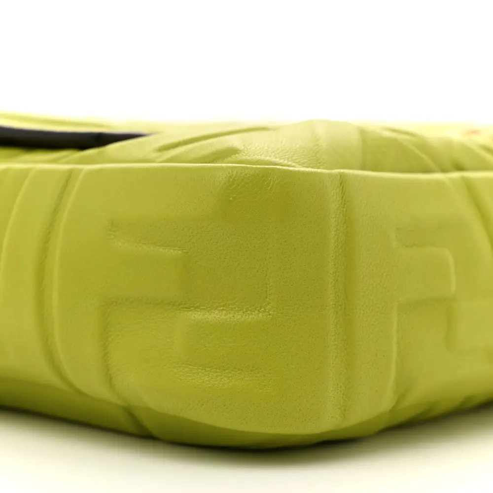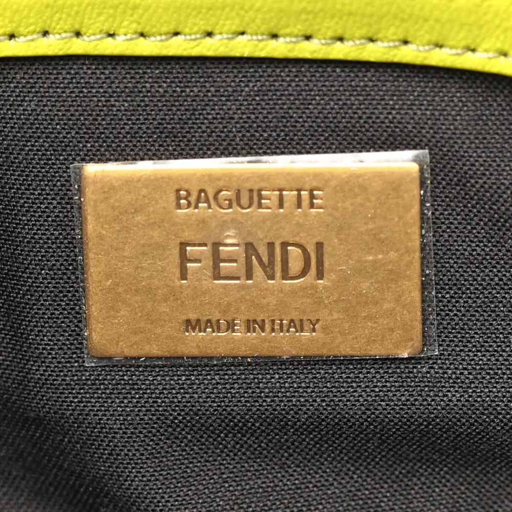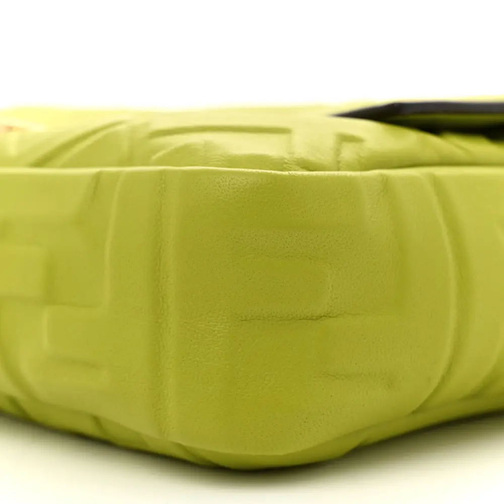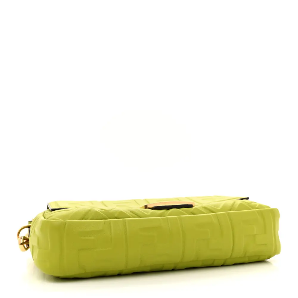 This Fendi FF 1974 Embossed Baguette in Wasabi Nappa Leather is bold and contemporary. Gold hardware accents its unique color and design. Spacious yet compact for your essentials. Perfect for casual outings or elevated looks. A vibrant addition to any accessory collection. A stylish choice for those who love statement pieces.