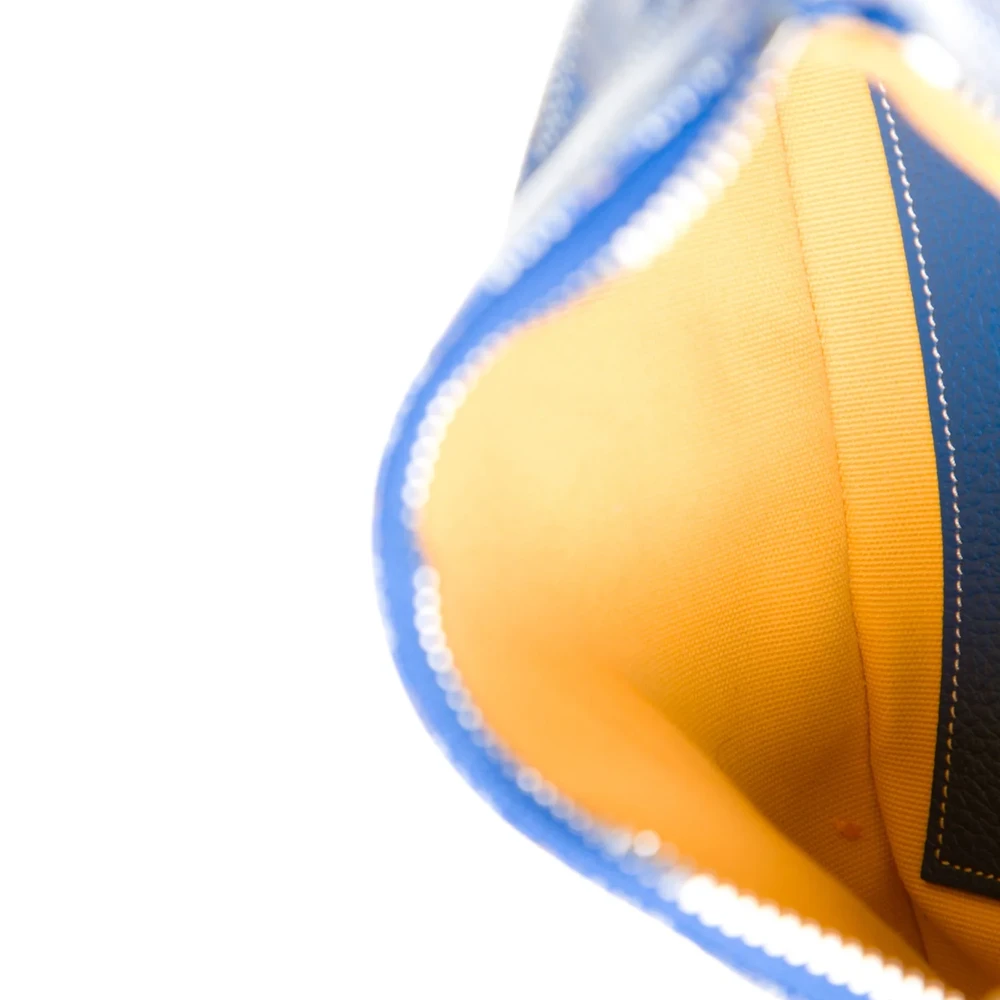 This Goyard Medium Senat Pochette Pouch combines practical design with iconic craftsmanship. Made from blue Goyardine canvas, it features the brand’s signature chevron pattern. The silver hardware enhances its refined aesthetic. Spacious yet lightweight, it’s perfect for organizing documents or essentials. This pouch conveys heritage craftsmanship with everyday utility.