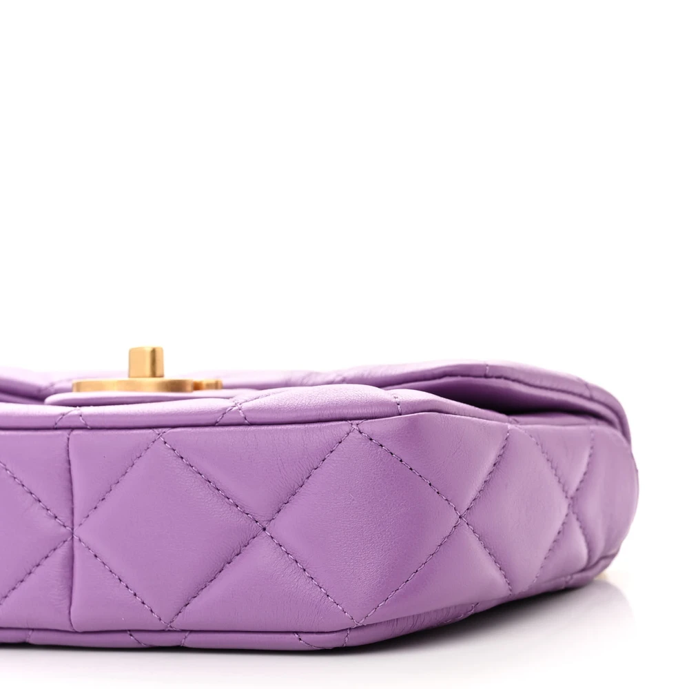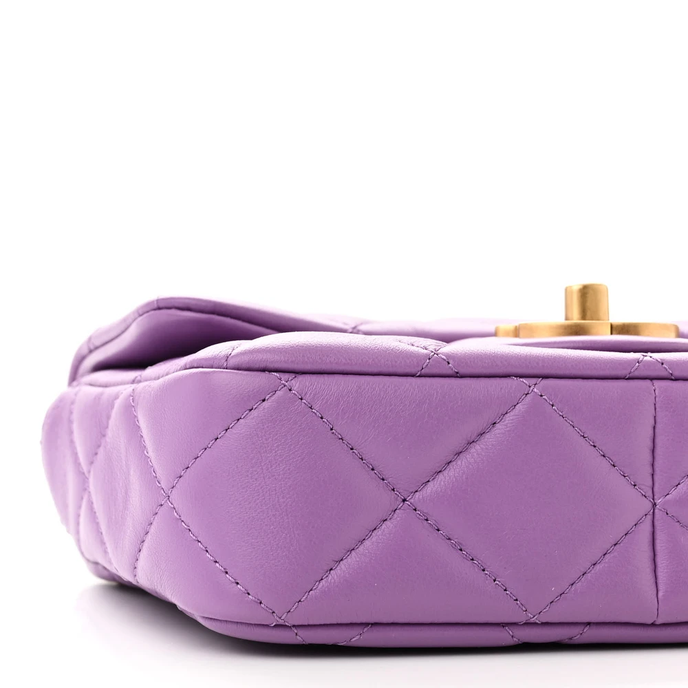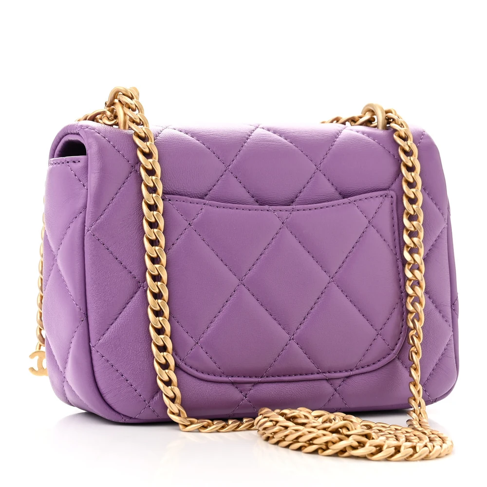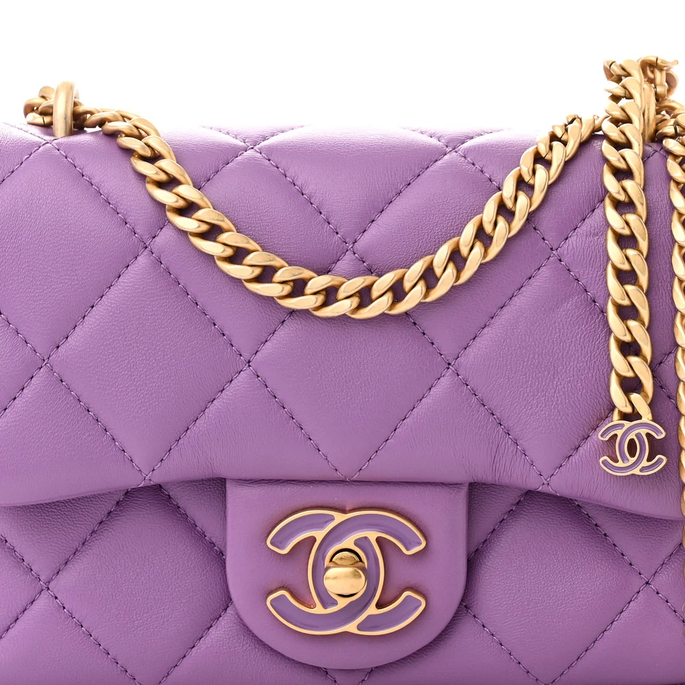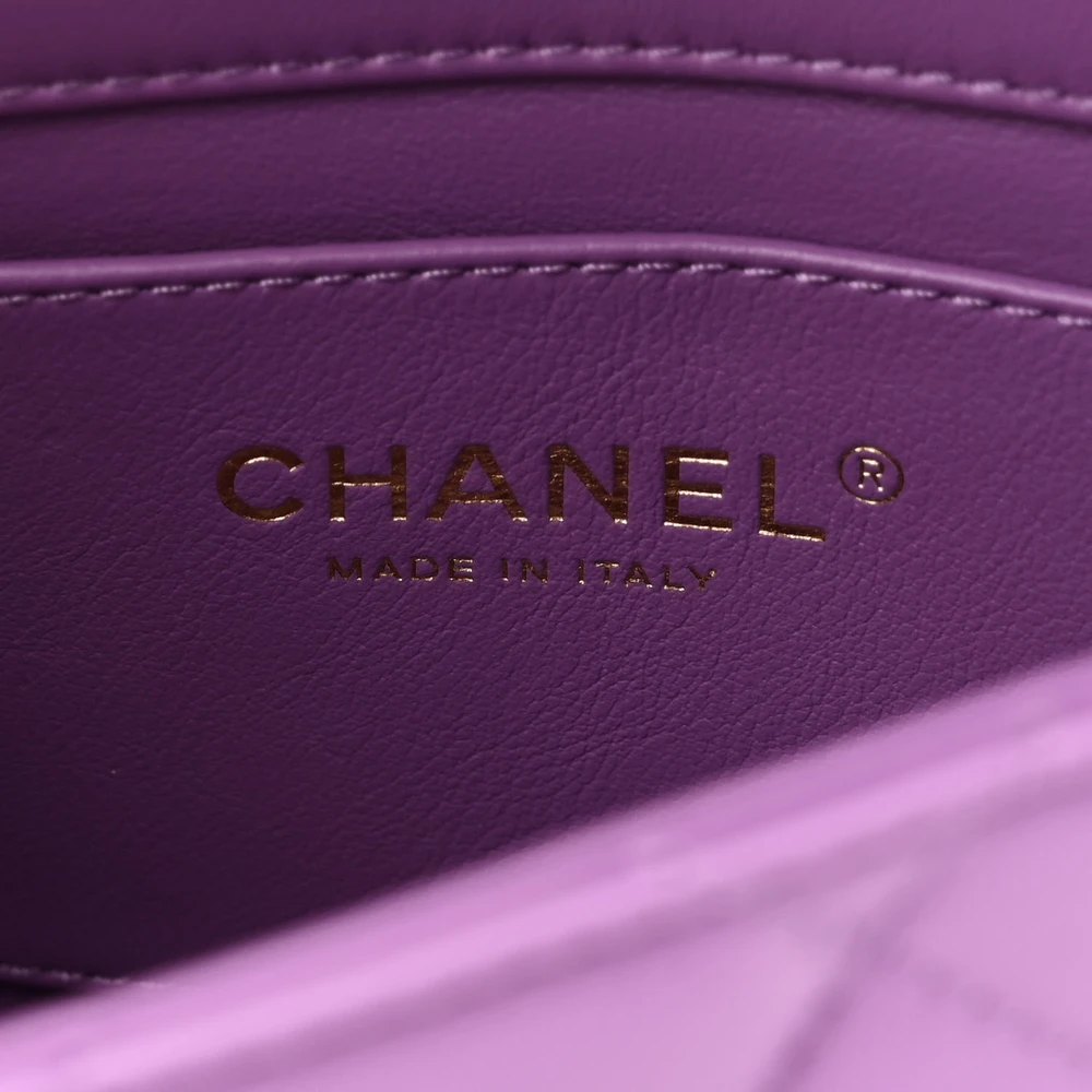 This Chanel Pending CC Square Flap Mini in Purple Enamel Quilted Lambskin Leather with Gold Hardware is a vibrant and luxurious accessory. The lambskin leather is soft and supple, featuring an enamel finish for a modern touch. Gold hardware adds elegance to its bold design. Perfect for evening occasions, it provides a compact space for essentials. The structured square shape adds a contemporary twist to Chanel’s classic aesthetic. A standout piece for fashion-forward individuals.