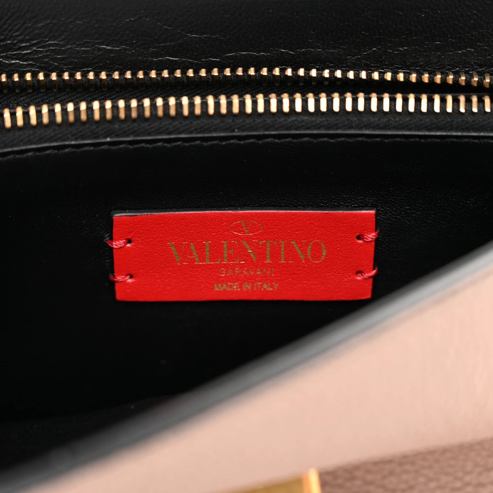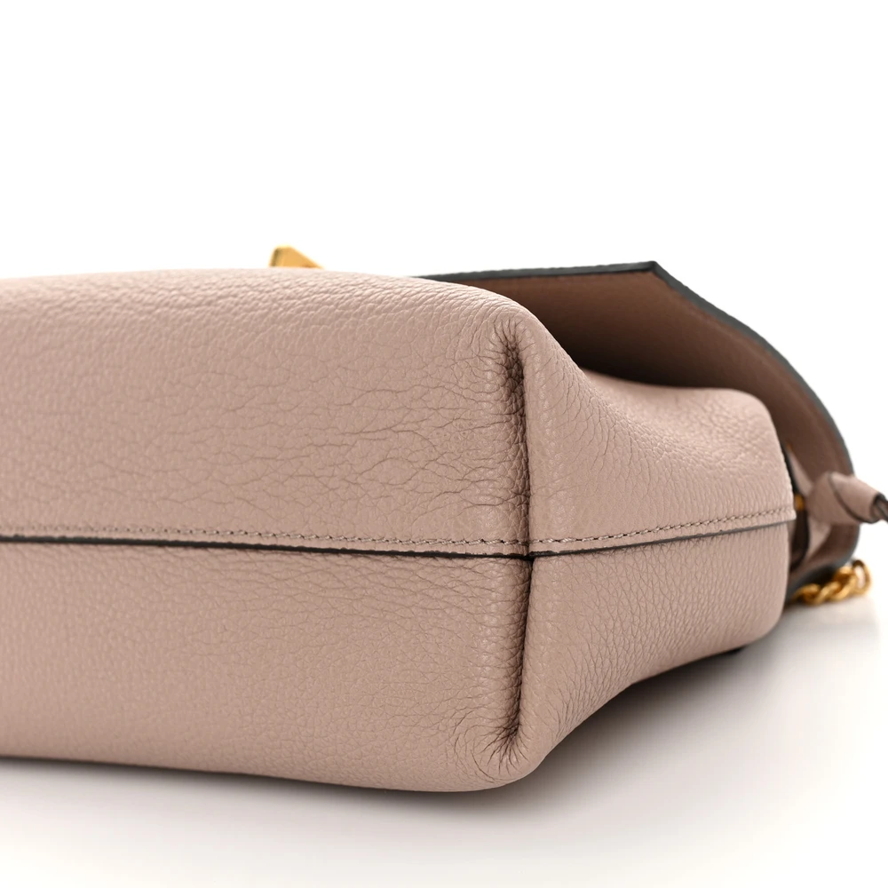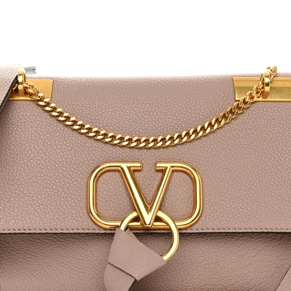 This Valentino Garavani Small VRing Chain Shoulder Bag in Poudre is elegant and versatile. Buffalo leather with gold hardware ensures a luxurious finish. Spacious enough for daily essentials. Perfect for casual or semi-formal occasions. A stylish accessory for modern wardrobes. Combines functionality with sophistication.