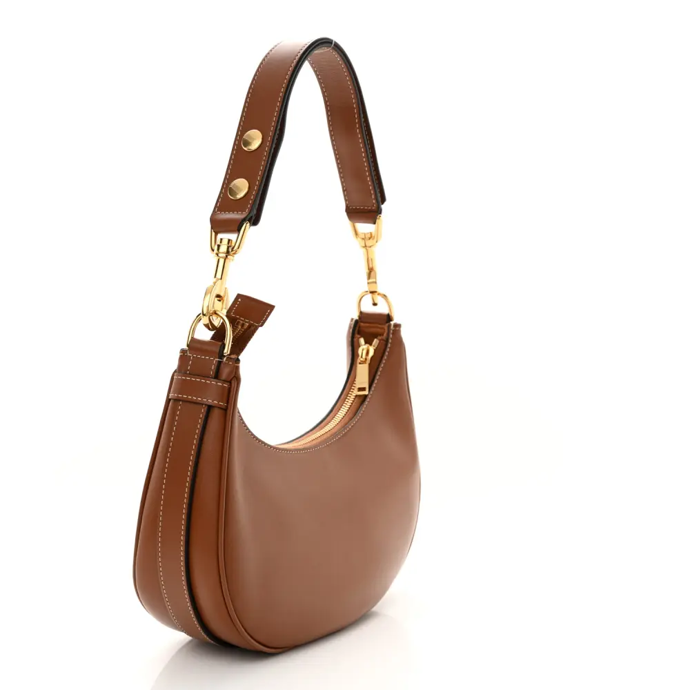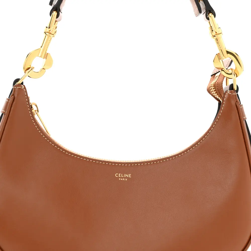 This Celine Medium Strap Ava Shoulder Bag in Tan combines smooth calfskin leather with gold hardware. Its minimalist design features an adjustable strap for versatile wear. Spacious and functional, it’s ideal for everyday use. The sleek silhouette adds understated sophistication. A timeless choice for modern elegance.