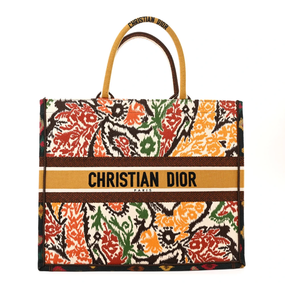 This Dior Large Paisley Book Tote in Multicolor Embroidered Canvas is a vibrant masterpiece. The intricate paisley embroidery showcases Dior’s artistic flair. Spacious and functional, it’s perfect for travel, work, or leisure. Durable canvas construction ensures it’s both stylish and practical. A statement accessory that complements bold, creative ensembles. Add a touch of artistry to your collection with this stunning tote.