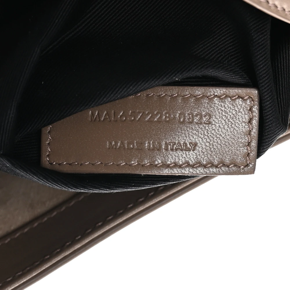 This Medium Le 5 À 7 Hobo in Taupe showcases Smooth Calfskin Leather with aged gold hardware. The sleek and curved silhouette offers a refined aesthetic, perfect for casual or semi-formal occasions. Its roomy interior is designed for practicality, while the adjustable strap provides comfortable wear. The minimalist design is elevated by the iconic YSL logo, making it a versatile addition to any wardrobe.