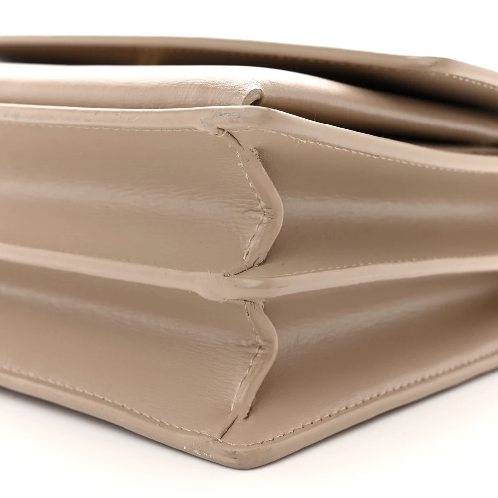 This Saint Laurent Medium Sunset Bag in Dark Beige is crafted from Monogram Calfskin Leather with Aged Gold Hardware. The structured silhouette features a chain strap for versatile styling and a monogram plaque for a signature touch. Its neutral hue makes it a perfect addition to any outfit, offering timeless elegance. Ideal for both daytime and evening wear.