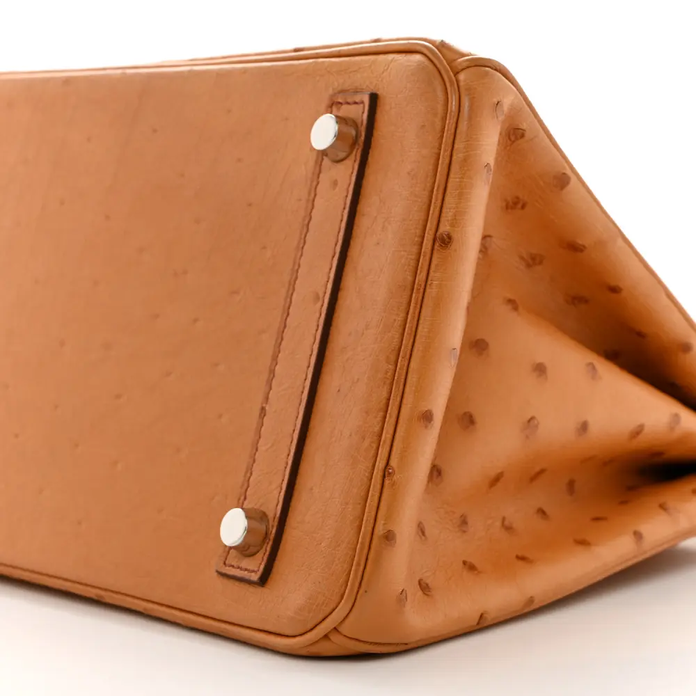 This Hermès Birkin 30 in Cognac Ostrich Leather is a luxurious classic. The rich cognac hue is enhanced by palladium hardware for a sophisticated finish. Crafted from exotic ostrich leather, it offers unmatched elegance. Its spacious interior is ideal for carrying daily essentials. A timeless piece for formal and casual occasions. A true collector’s item for the discerning enthusiast.