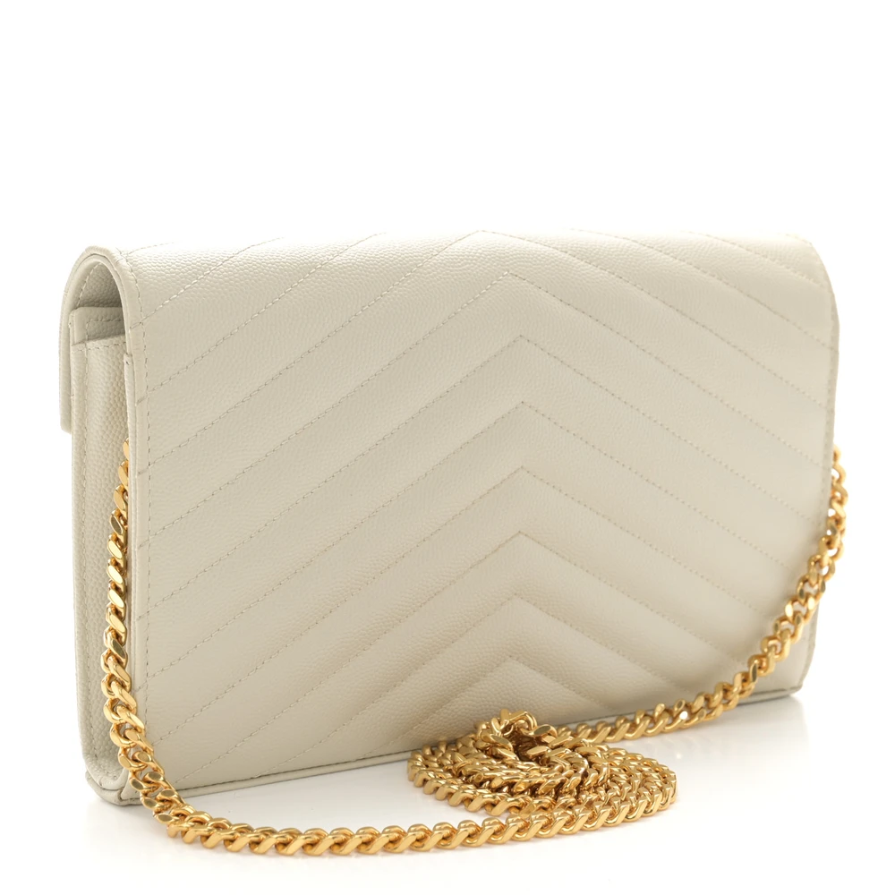 This Chain Wallet in Nude Powder showcases Chevron Monogram Grain De Poudre Matelasse Leather with gold hardware. The elegant design is compact yet functional, perfect for carrying essentials in style. A chain strap adds versatility, making it ideal for both day and night outings.