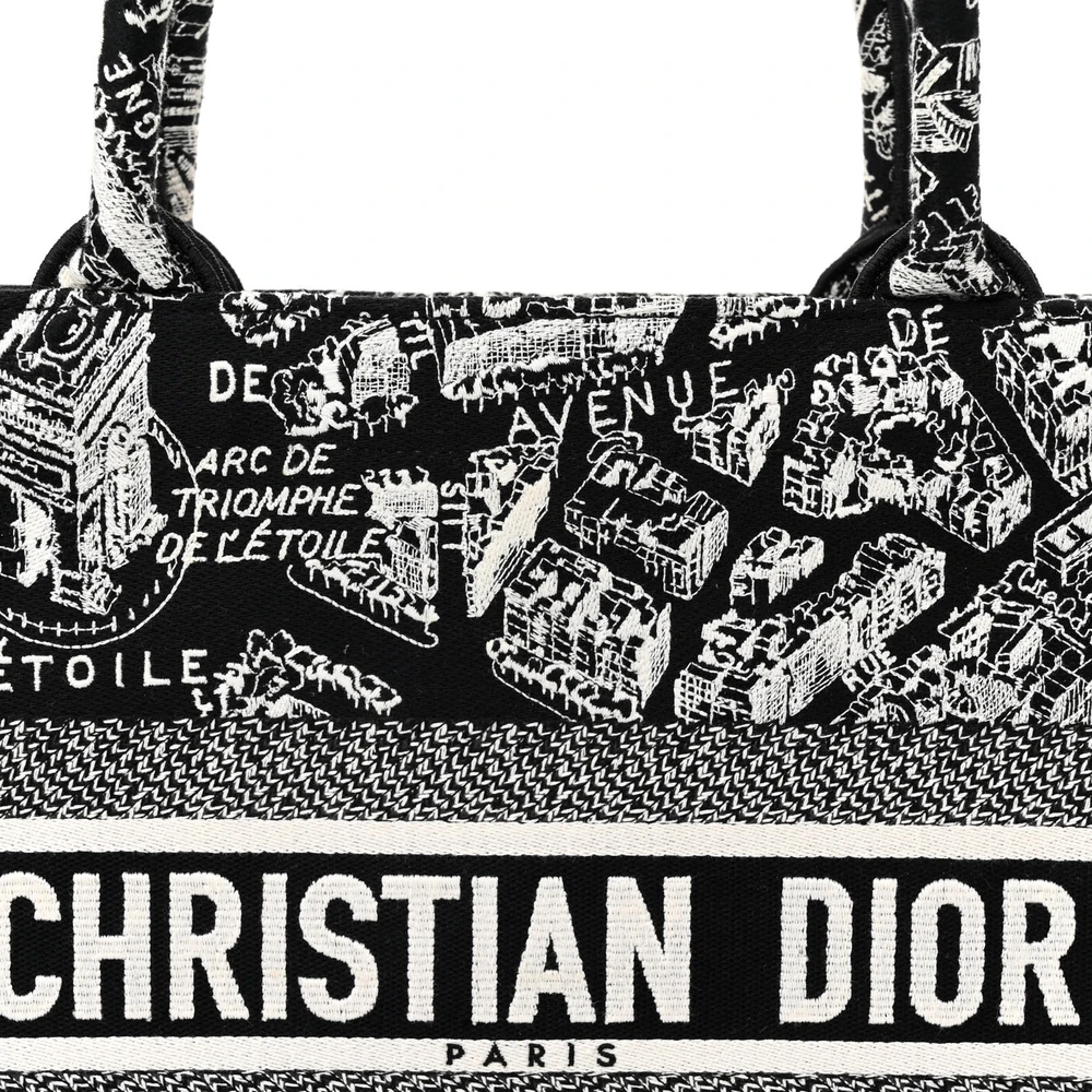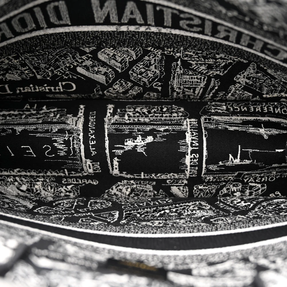 This Dior Medium Plan De Paris Book Tote in Black/White Embroidered Canvas is an ode to Parisian elegance. The detailed map-inspired embroidery celebrates Dior’s roots. Spacious and stylish, it’s ideal for carrying books, documents, or travel essentials. Its structured silhouette ensures functionality while maintaining sophistication. Perfect for work or leisure, it embodies Dior’s artistry. A timeless addition to any fashion collection.